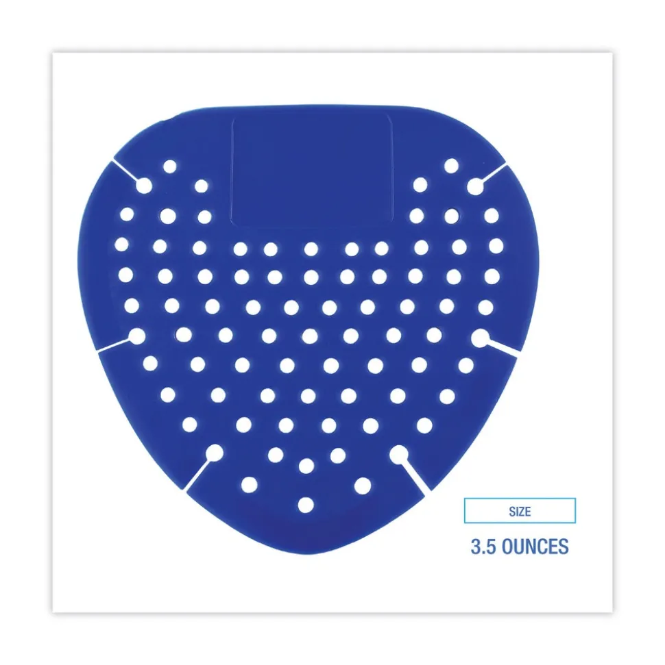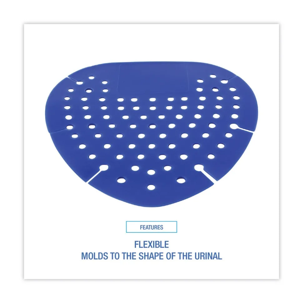 Freshen your urinal with an inviting fragrance that masks uncomfortable odors. Flexible, anti-splash technology that shields, protects, and deodorizes urinal. Highly flexible material that molds to the shape of the urinal to fit most urinals. Strong and pleasant scent that masks odors, making guests more comfortable and bathrooms appear cleaner. Vibrant color is easy to see and adds ambiance to the bathroom space.