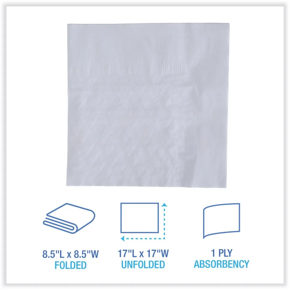 Boardwalk BWK8307 17 in. x 17 in. 1-Ply Dinner Napkin – White (3000/Carton)