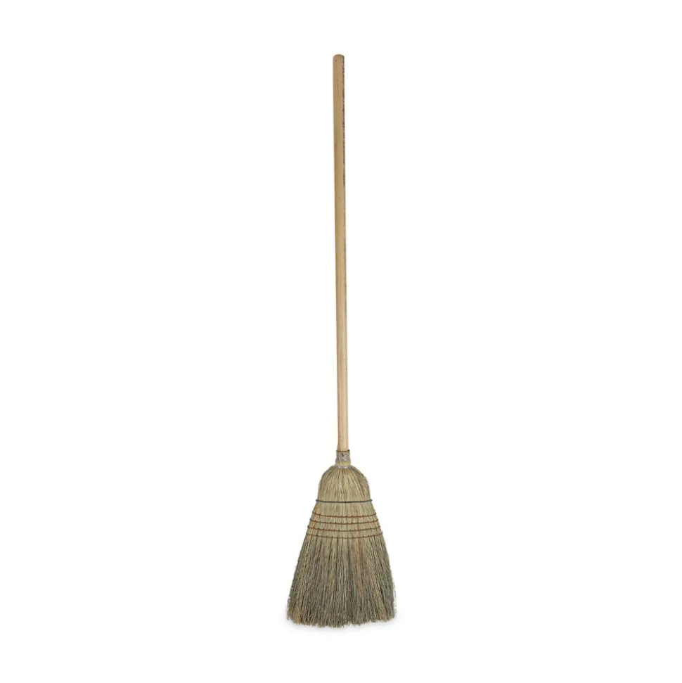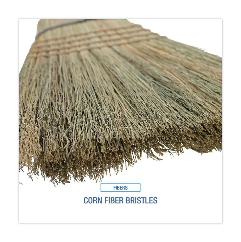 Natural colored, warehouse broom for heavy-duty sweeping. Constructed with stiff, natural, corn fiber bristles that are tightly secured to the handle with a heavy, metal wire. An ideal, sturdy broom for sweeping concrete and other rough floor surfaces. Solid wood handle that’s lacquered to prevent splintering and blistering. Four rows of stitching provide added strength and durability for lasting use.