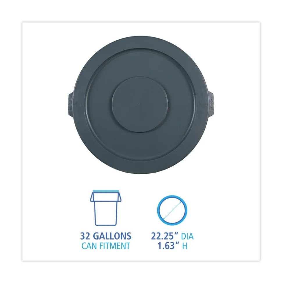 Plastic Round Flat-Top Lid for 32 Gallon Waste Receptacles – Gray – 32GLWRLIDG