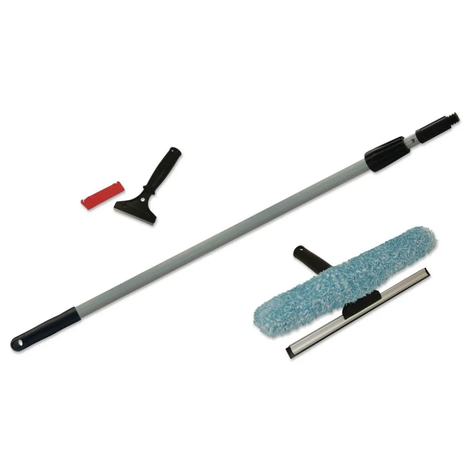 Boardwalk 6155-BWK Window Cleaning Kit, 12-in Wide Combo Washer/Squeegee, 8 ft Extension Pole, 4-in Wide Scraper with 8-in Handle