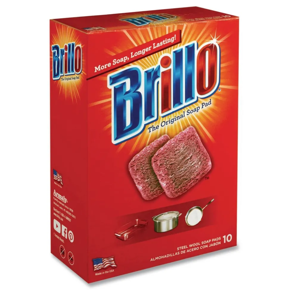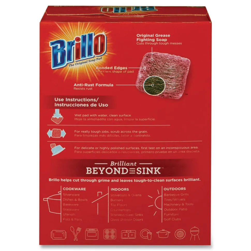Powers out grease and grime. These soap pads are designed to remove the toughest grease and grime. The classic square shape reaches into corners to knock out tough messes, while its unique bonded edges help maintain its iconic shape. Give it a try. The anti-rust formula restores grills, pots and baking sheets to their former glory. That’s why Brillo is one of the most trusted names in household cleaning.