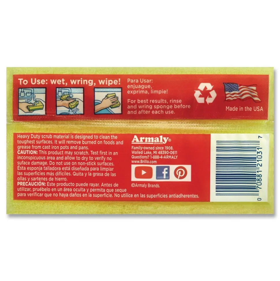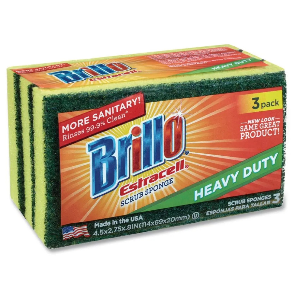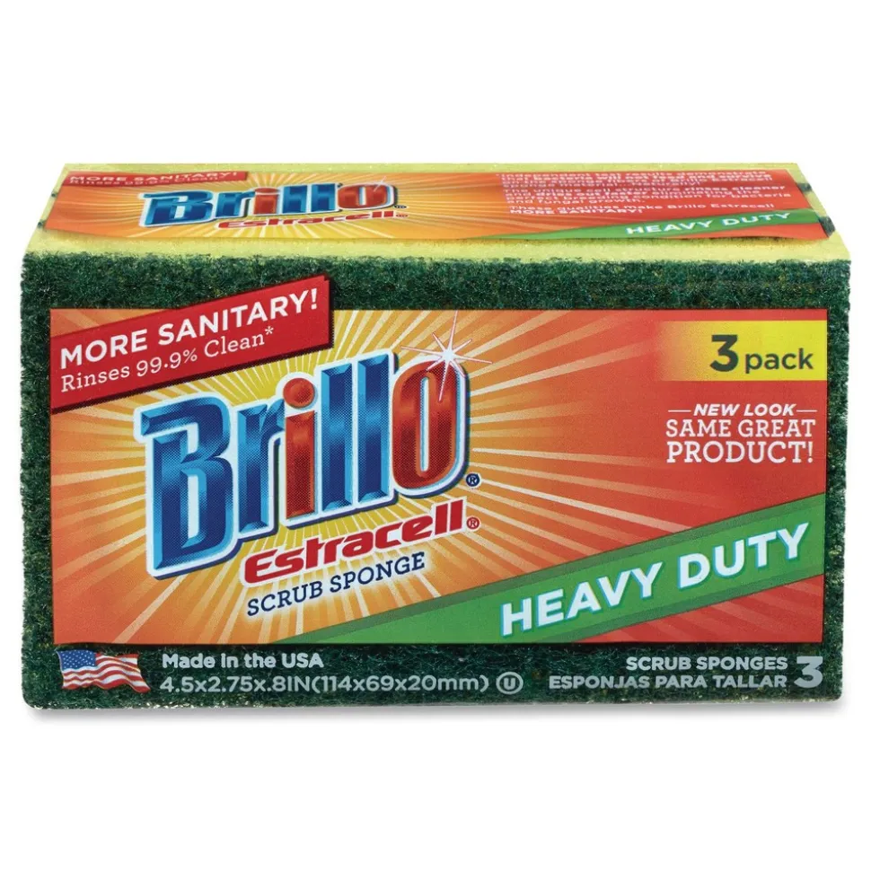 The more sanitary, dual-sided Brillo Estracell Heavy Duty Scrub Sponge easily removes burnt-on foods. It’s made with unique fibers that dry faster, and rinse 10x faster than other sponges, too. Use a different sponge for all your surfaces, so you can clean up without spreading bacteria around. This, plus the fact that bacteria won’t grow on our Estracell sponges, makes them more sanitary. That’s why Brillo is one of the most trusted names in household cleaning.