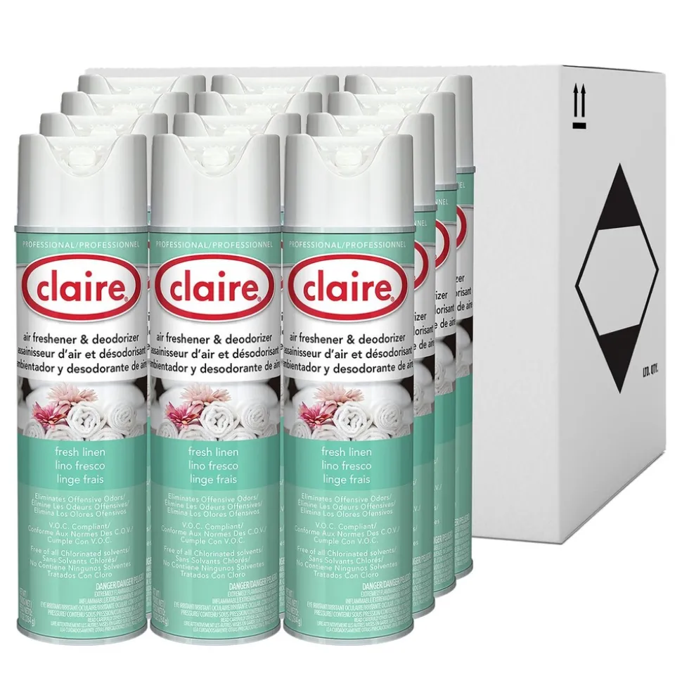 Claire CL163 10 oz. Aerosol Spray Aerosol Air Freshener and Deodorizer – Fresh Linen (1/Carton)