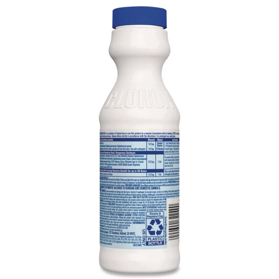 Slimmed down version makes it easier to pour. Clorox Disinfecting Bleach with CloroMax kills 99.9% of household germs and bacteria including norovirus, flu virus, MRSA, E. Coli, and Salmonella left on surfaces such as countertops, floors, toilets and more. America’s #1 bleach is more concentrated compared to Clorox Disinfecting Bleach2 getting more cleaning power per drop with 33% more compact dose reducing the amount of bleach required for cleaning. This cleaning bleach contains CloroMax Technology to protect surfaces as it cleans, so stains won’t stick and cleanup is easier. It also whitens whites and keeps clothes whiter longer, while removing 70% more stains than detergent alone. Remove tough laundry stains from white clothes including red wine, grass, dirt and blood stains with the bleach that you can trust. Ideal for use in offices, restaurants and other commercial facilities. CloroxPro, where clean means everything.