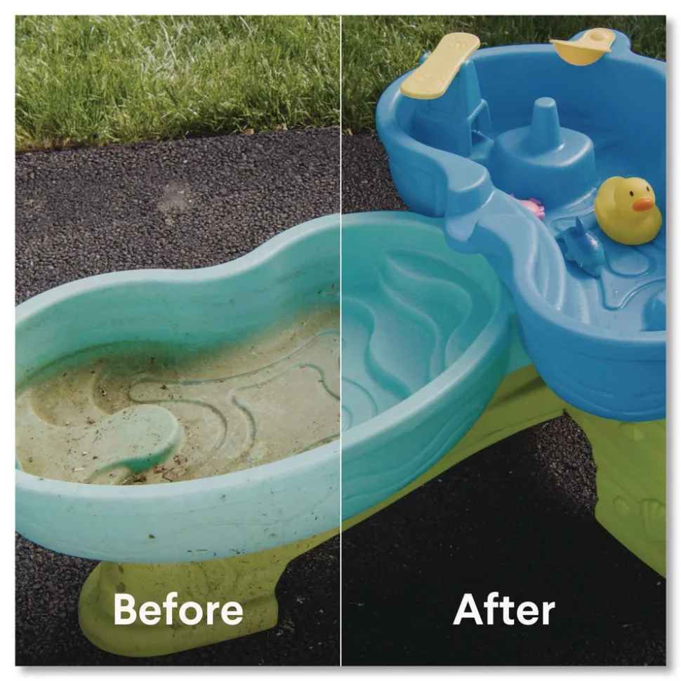 Contains CloroMax Technology to keep clothes whiter longer and protects household surfaces by reducing soil adhesion as it cleans so stains won’t stick and cleanup is easier