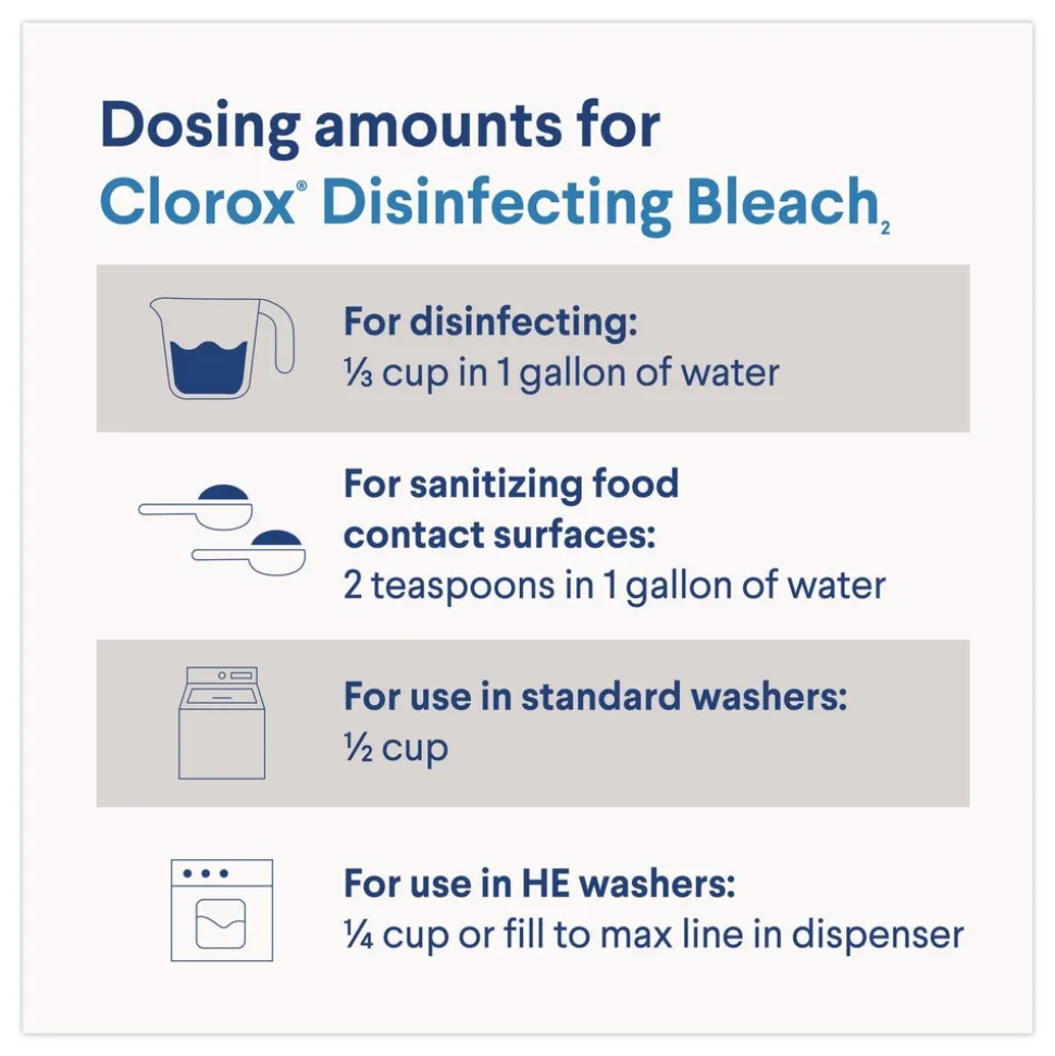Get more cleaning power per drop with this concentrated formula with 33% more compact dose reducing the amount required for cleaning (compared to Clorox Disinfecting Bleach2).