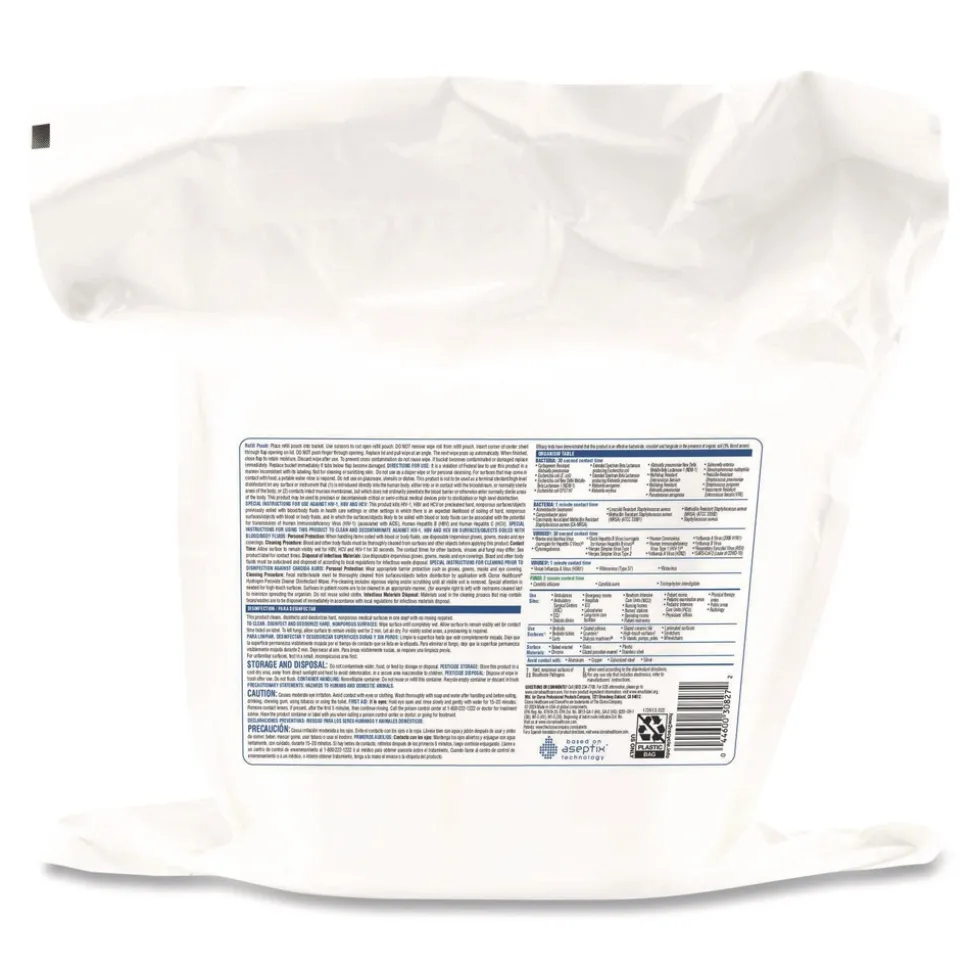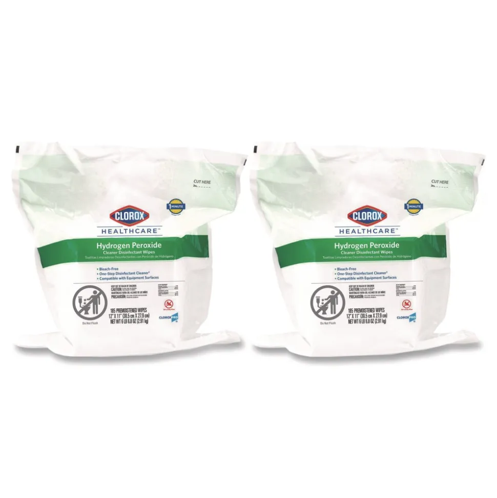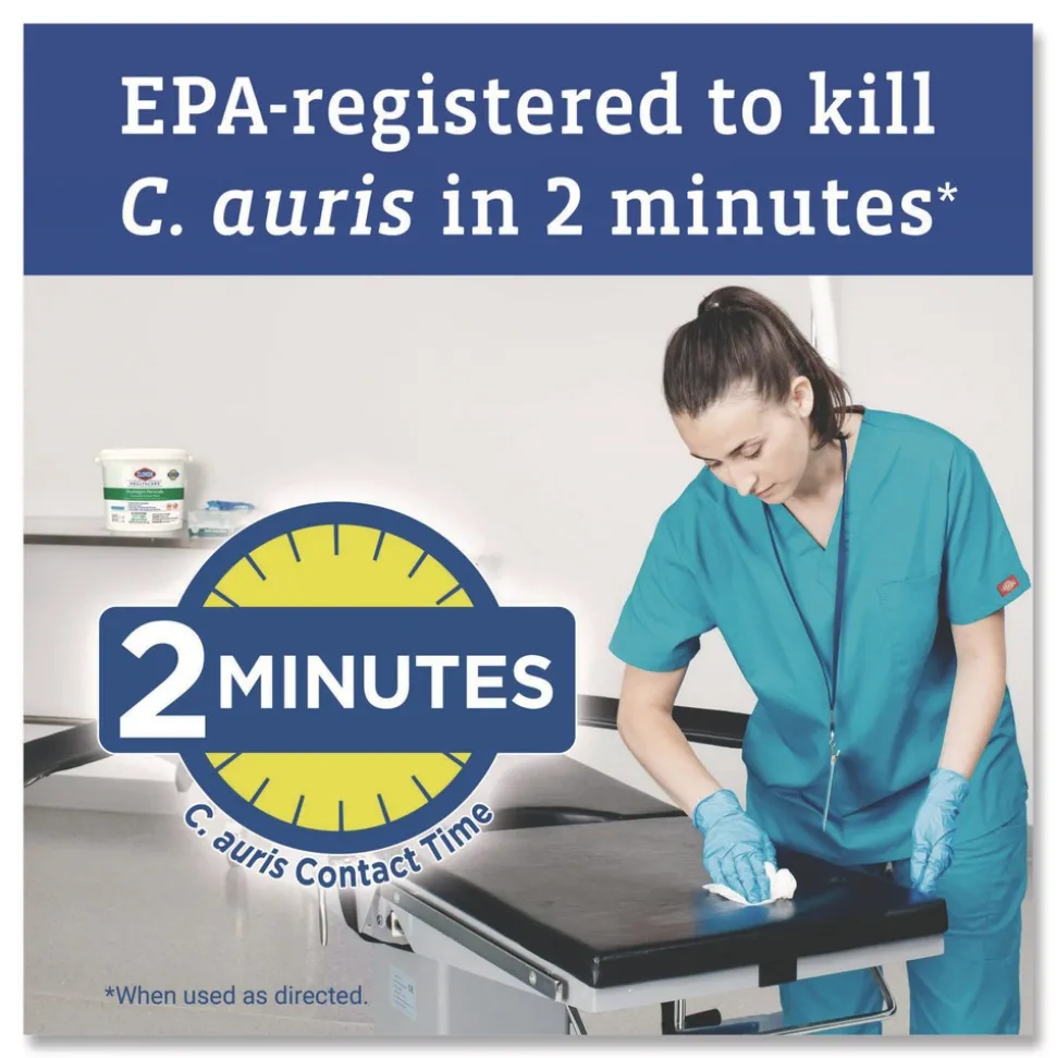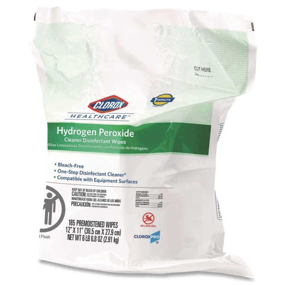 Great surface compatibility, less residue. Clorox Healthcare Hydrogen Peroxide Cleaner Disinfectant Wipes leave no harsh chemical odor or fumes and kill bacteria and viruses in 30 seconds. Disinfect with one wipe that is registered to kill C. auris, 13 antibiotic resistant pathogens and multiple strains of MRSA. This ready to use broad spectrum disinfectant has a noncorrosive formula suitable for cleaning medical devices, common areas and high touch surfaces made of materials like stainless steel, painted metals, glass, chrome, glazed tile, plexiglass and sealed fiberglass. These Clorox Healthcare hydrogen peroxide wipes are ideal for daily use in healthcare settings including hospitals, medical facilities, outpatient facilities and long term care facilities.