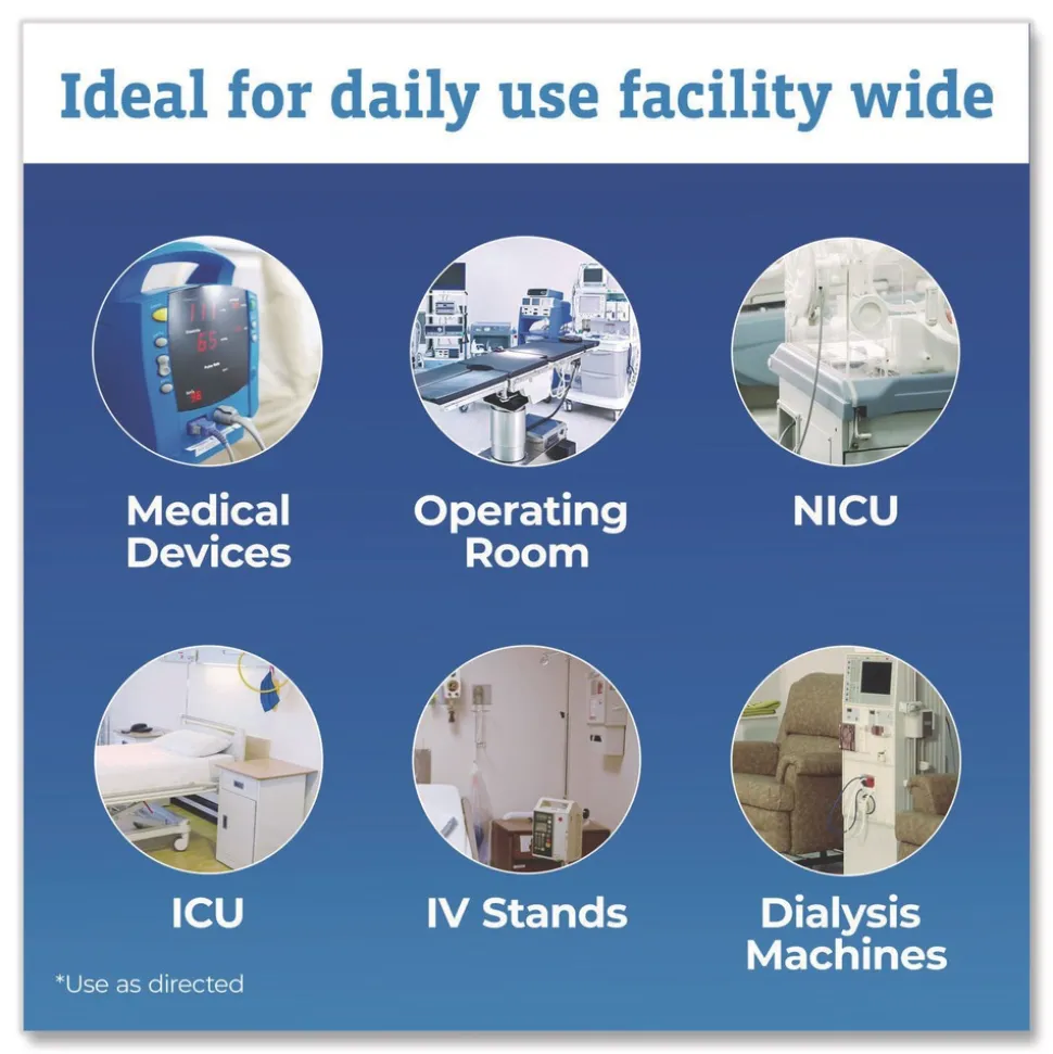 Wipes are nonflammable, noncorrosive and fragrance free, making them ideal for use around patients and staff.