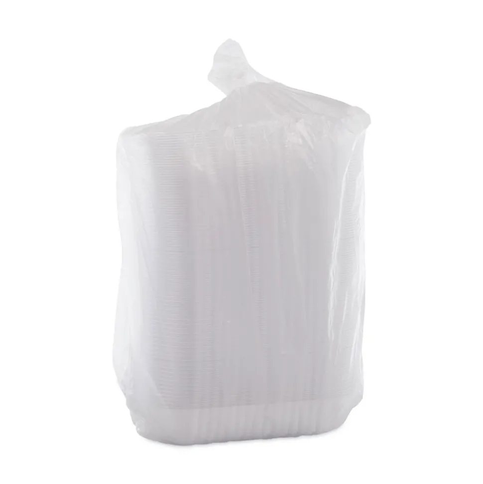 (500/Carton) ClearPac 6.2 in. x 6.2 in. x 1.6 in. 3.3 oz. 2-Compartments Plastic Nacho Tray – Large Clear – C68NT2
