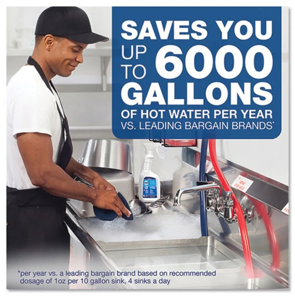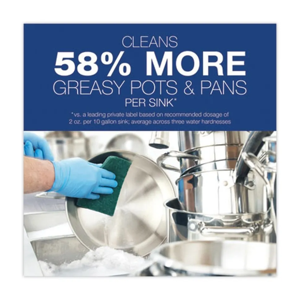 Dawn Professional dishwashing detergent with long-lasting suds cleans 58% more greasy pots and pans per sink (vs. Dawn non-concentrated).