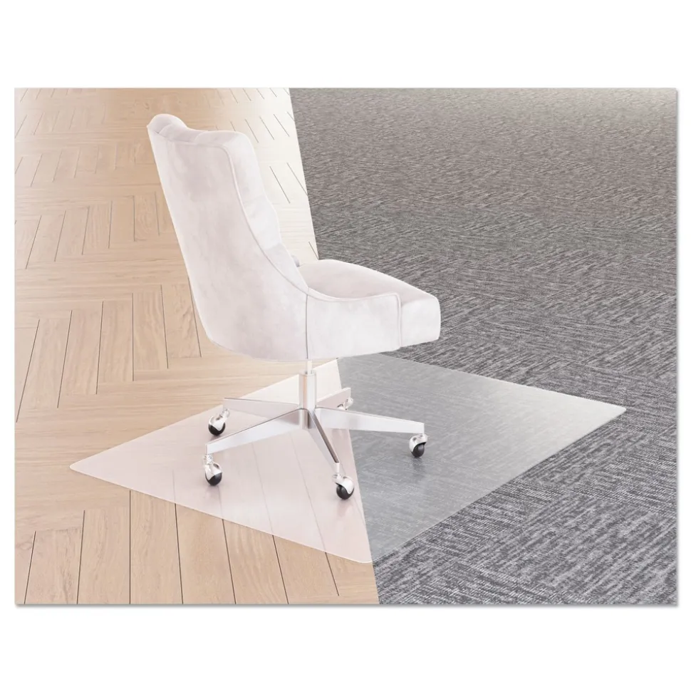Innovative SuperGrip smooth bottom surface chair mat replaces sharp studs and sticky adhesives to hold mat firmly in place on carpet or hard floors. Gently protects multiple flooring types from normal wear and tear, and damage caused by chair casters. Easy glide rolling surface improves chair mobility and helps reduce leg and back strain. Recommended for use on low-pile carpets up to 0.38 in. thick, and hard floors. Made from our Free and Clear non-orthophthalate, non-cadmium formula that promotes a healthy work environment, while offering exceptional clarity and durability.