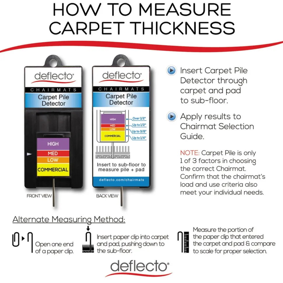 The SuperMat chair mat is a versatile choice for frequent use on carpets up to 1/2″ thick and is well-suited for a variety of commercial and home office applications. Easy-glide rolling surface provides smooth chair movement to help minimize stress and strain on users back, legs and feet. Bottom studs grip the carpet securely and keeps the chair mat from moving. Deflecto’s Free and Clear non-orthophthalate, non-cadmium formula promotes a healthy work environment.