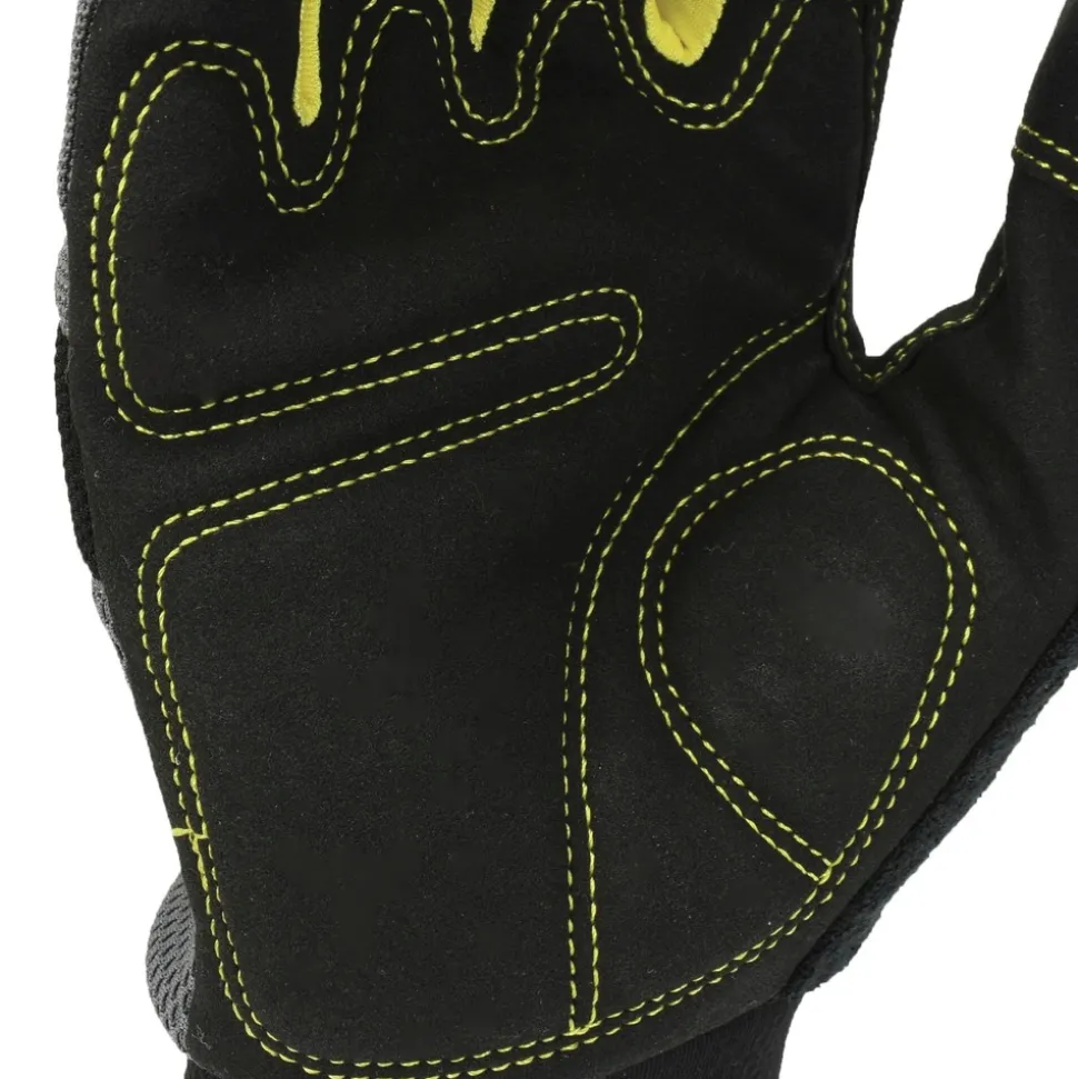 The DEWALT DPG211 Foam Padded Performance Glove protects against hand fatigue when working on jobs such as machinery repair, wooden structure installation, or digging through gravel and rock. Foam padding on palms and knuckles cushions hands from tool use, while synthetic leather fingertip overlays provide a strong grip and abrasion resistance. Double stitching and thumb saddle provides added durability.