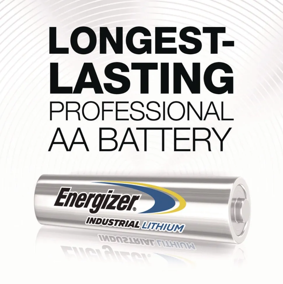 Power your industrial and professional devices with Energizer Industrial Lithium AA Batteries. Construction site, facility maintenance, medical center, business office and classroom-wherever you work, the longest-lasting professional AA batteries keep your electronics up for the job. In normal use, they’re 100% leakproof to protect your worksite devices, and they operate in temperatures ranging from -40 Degree F to 140 Degree F. With a 25-year shelf life, you won’t have device downtime. All of that lithium performance comes in a heavy-duty AA battery that weighs 33% less than an alkaline AA. When work depends on automatic paper towel dispensers, hard hat lights, pulse oximeters, and more, you can rely on the power and protection of Energizer Industrial Lithium AA Batteries.
