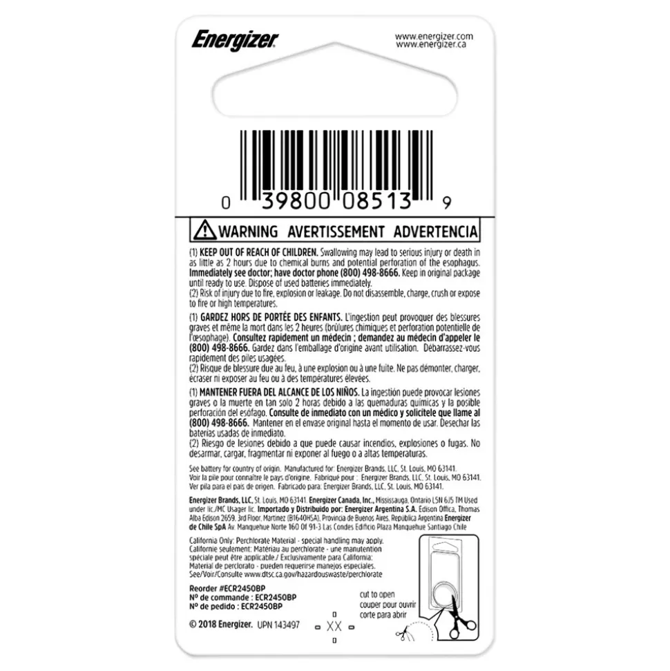 Energizer ECR2450BP 3 Volts 2450 Lithium Coin Battery