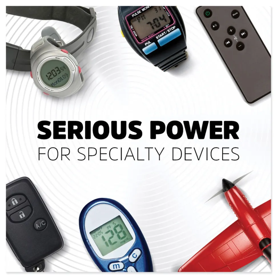 Delivers long-lasting, dependable performance in specialty devices like heart rate monitors, remotes, keyless entry systems, glucose monitors, toys, and games.
