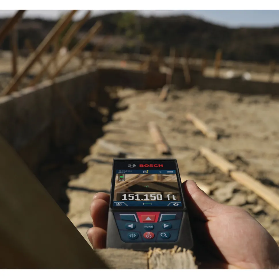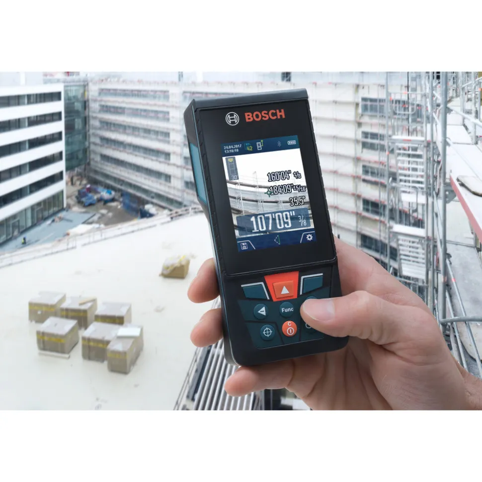 Factory Reconditioned Bosch 400 ft Cordless Bluetooth Laser Measure with Camera Viewfinder and AA Batteries Kit