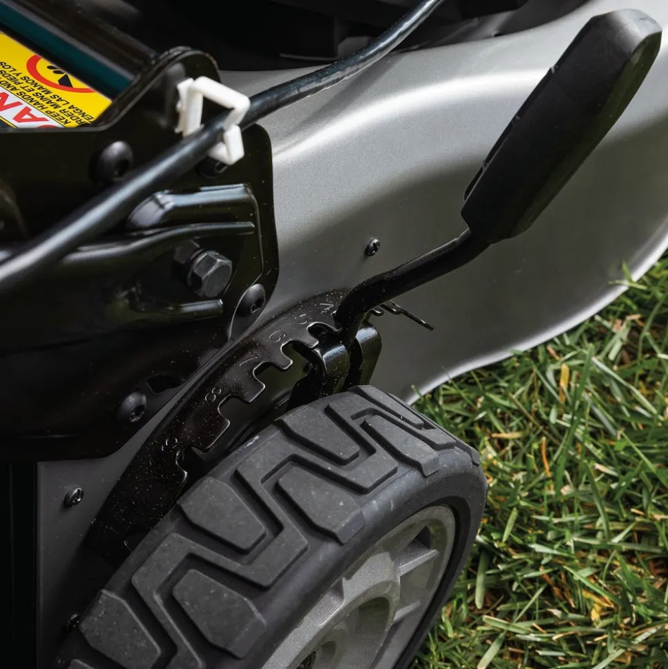 Single lever cutting height adjustment for quick adjustment of 10 cutting heights (1-1/4 in. – 4 in.)