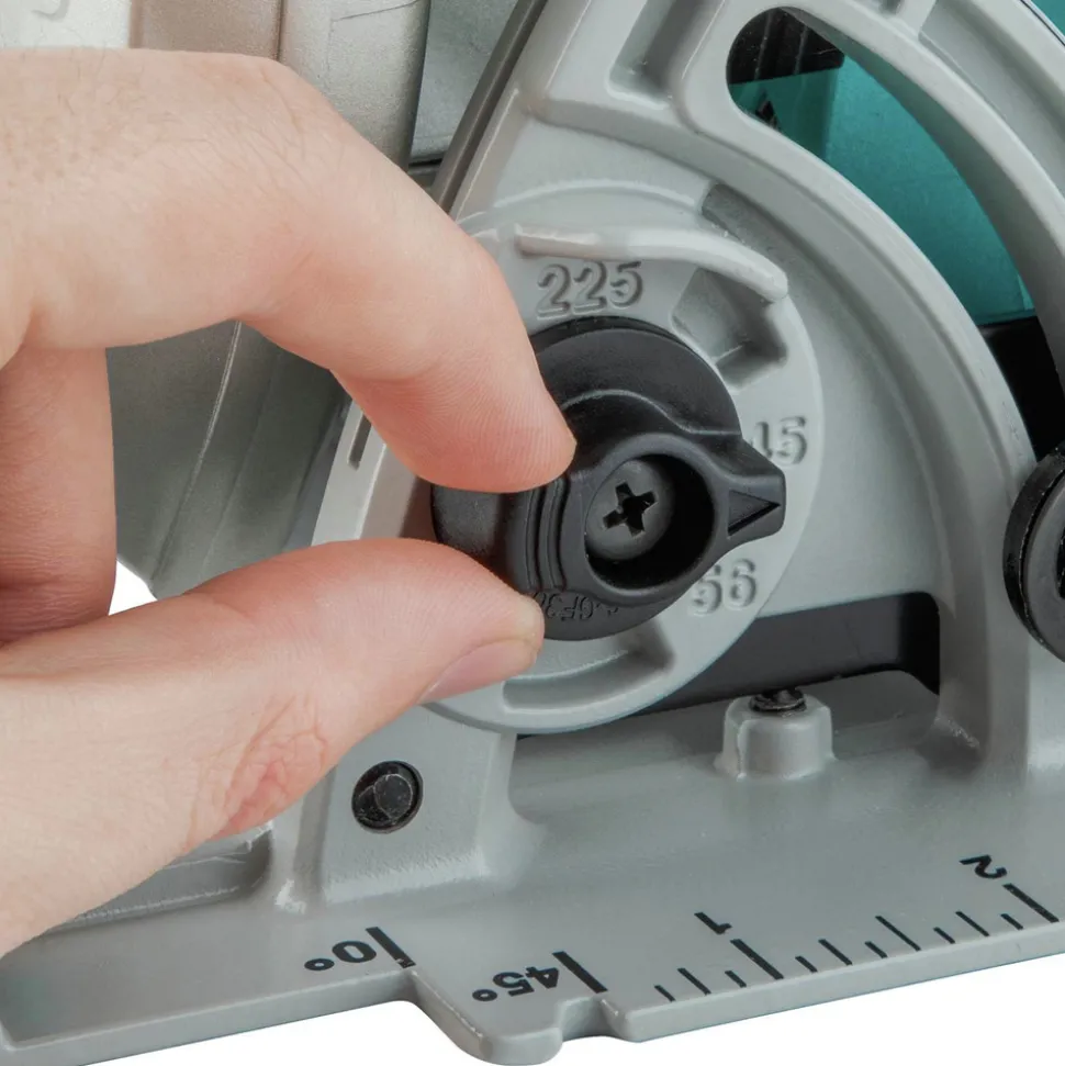 0 degree – 56 degree bevel capacity with positive stops at 22.5 degrees, 45 degrees, and 56 degrees
