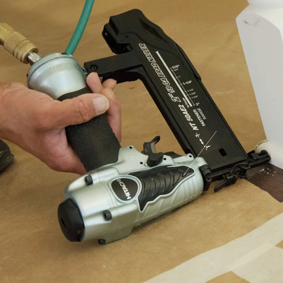 The lightweight Metabo HPT NT50AE2MR 2 in. 18-Gauge Brad Nailer is an ideal tool for small carpentry projects. It features a high-capacity magazine, exhaust vent, easy depth-of-drive adjustments, and a removable nose cap for prolonged tool life. This pneumatic brad nailer will help you tackle everything from cabinet installation and picture-frame assembly to furniture construction and finish work.