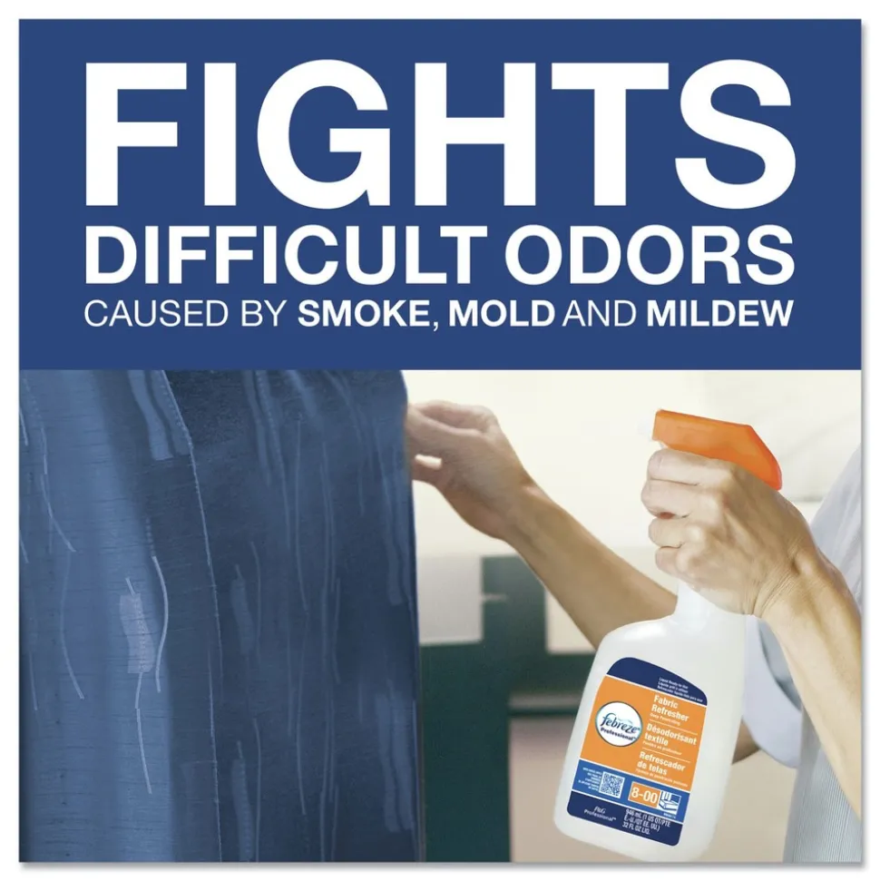 Refresh the fabrics in your business with a light, fresh scent by fighting tough odors with Febreze Professional fabric refresher spray. Patented technology in Febreze fabric refreshers fights odors, so all that your customers can smell is clean.