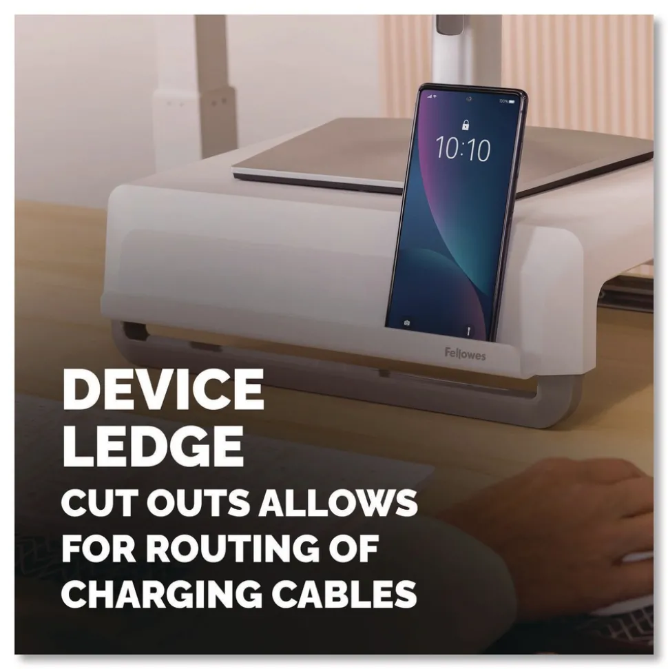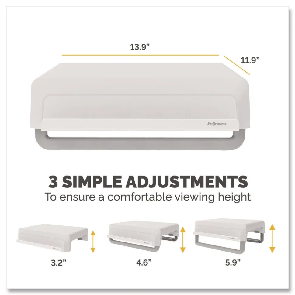 Fellowes Mfg Co. 100098565 13.94 in. x 11.97 in. x 3.25 in. to 6 in. Supports 33 lbs. Breyta Monitor Stand – White