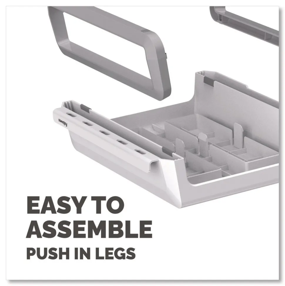 Featuring a modern design aesthetic and an innovative feature set, the Breyta Monitor Stand is an excellent choice for anyone who wishes to alleviate eye, neck and shoulder strain by elevating their monitor to a more comfortable level. With three height settings and a unique stacking column design, it’s easy to achieve an ergonomic viewing angle; and since the stacking columns can be clipped flat against the underside of the platform, it’s compact and portable, too, making it ideal for hybrid work scenarios. The support columns also feature an open-loop design and non-skid rubber feet to both accommodate cord management and deliver extra stability. Sturdy, high-impact plastic construction.
