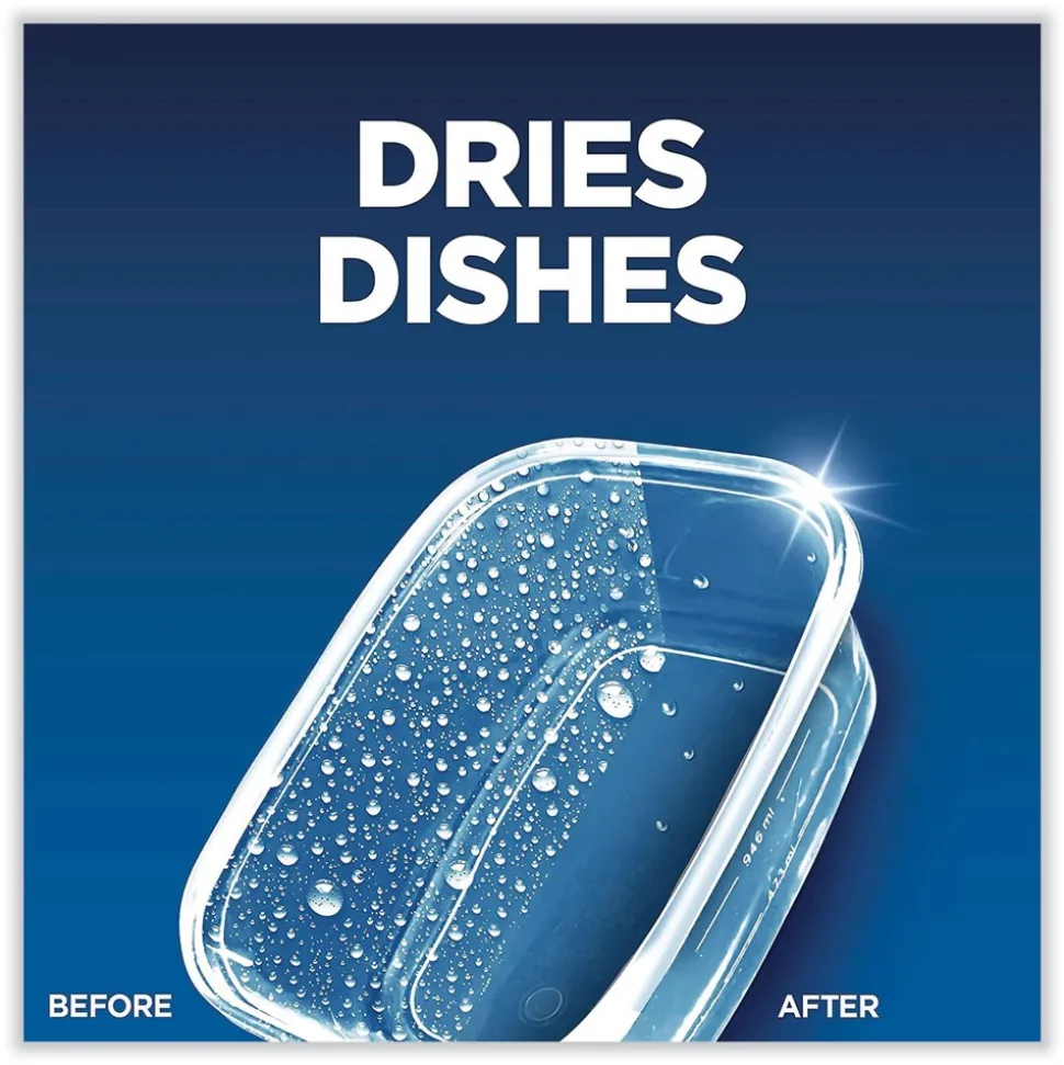 Simply fill your machine’s rinse aid compartment with Finish Jet-Dry 3-in-1 to solve three problems at onceit rinses, dries, and shines what detergent alone can’t! Rinses away leftover food and film. Dries left behind water droplets. Clears spots for a brilliant shine. Easy to use, simply refill the rinse aid compartment every few weeks, not every wash.
