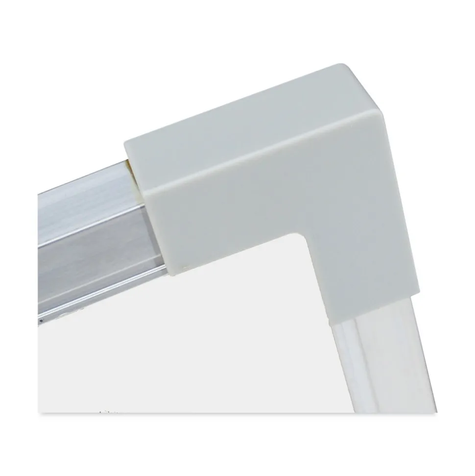 Framed dry erase board features a bright white dry erase surface. Dry erase markers will write easily, dry quickly, and wipe off clean with a soft cloth or eraser. The sleek frame will match any home, school, or office decor! These boards are non-ghosting and have a high-quality surface.