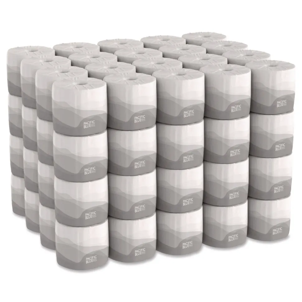 (80 Rolls/Carton) 1-Ply Pacific Blue Basic Embossed Septic Safe Bathroom Tissue – White – 1988101