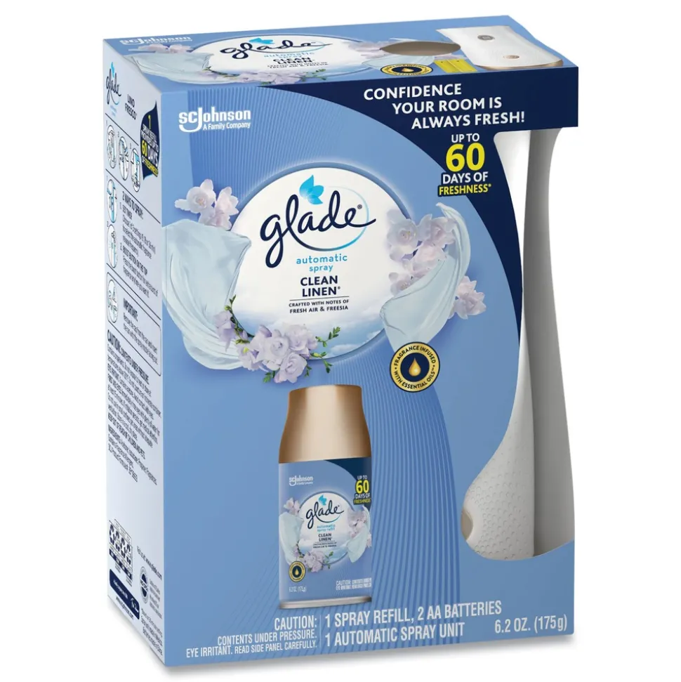 Glade 310916 Clean Linen Automatic Spray Starter Kit – White/Gold (4/Carton)