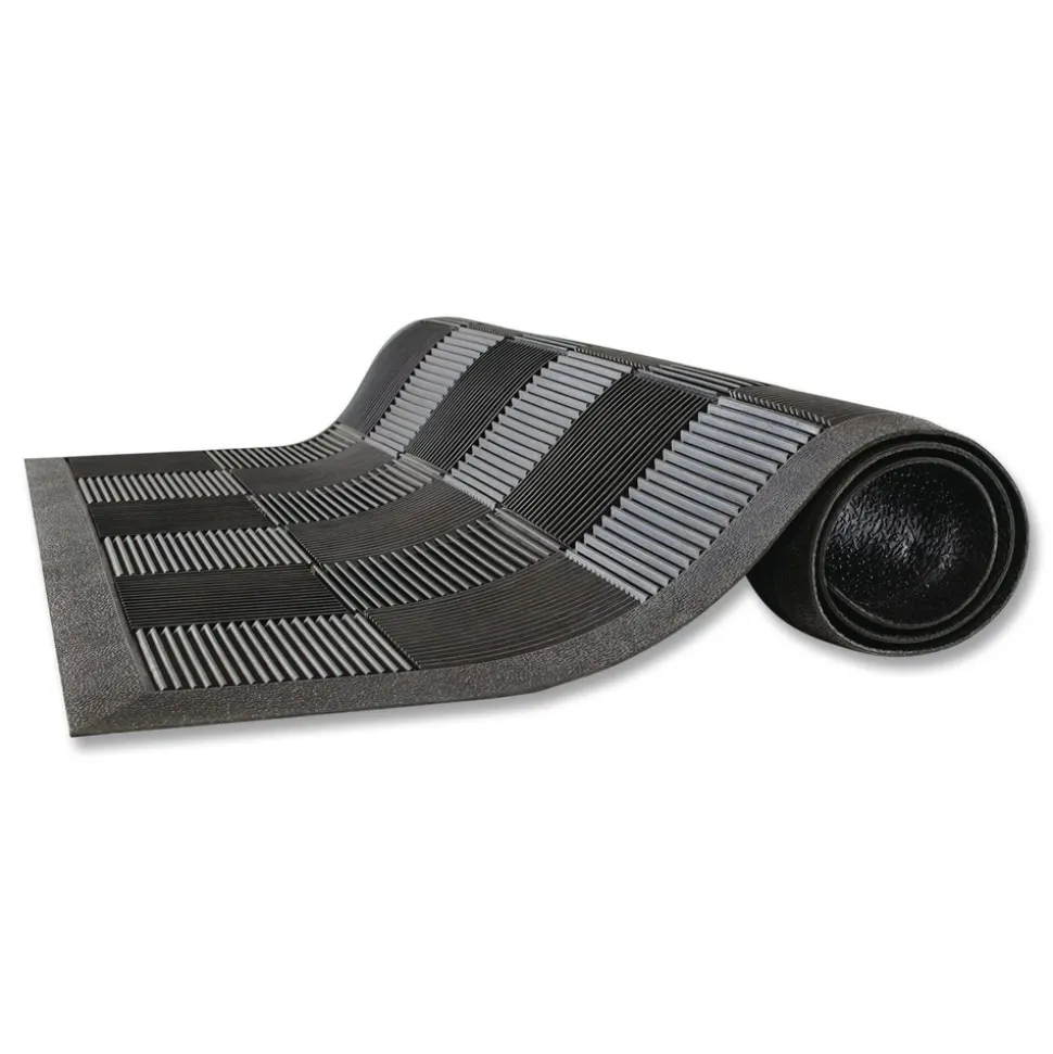 Ideal for any outside entryway, the superior molded parquet pattern wipes shoes clean of dirt and grime, then traps it at the base of the mat. Made of 100% rubber, these strong scraper mats are a perfect first step for any floor protection system.