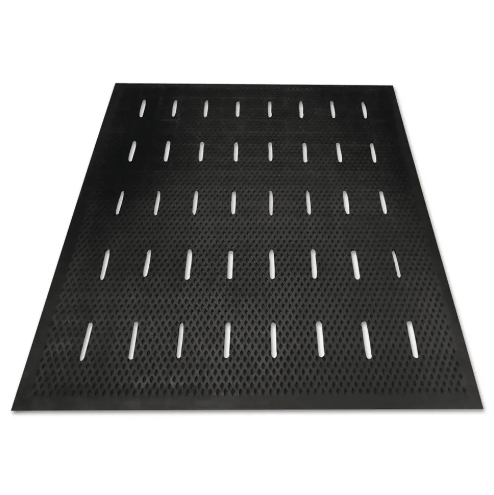Drainage slots allow liquids to flow through the mat, keeping moisture away from feet