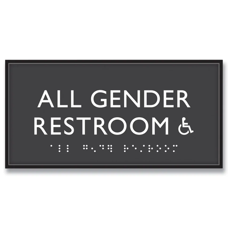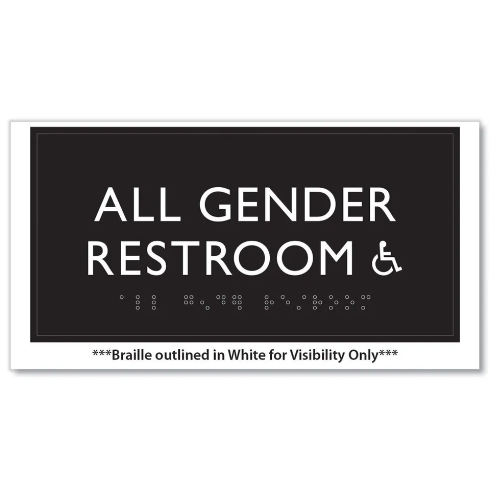 Headline Sign 69921 4 in. x 8 in. All Gender Restroom Accessible Plastic ADA Sign – Clear/White