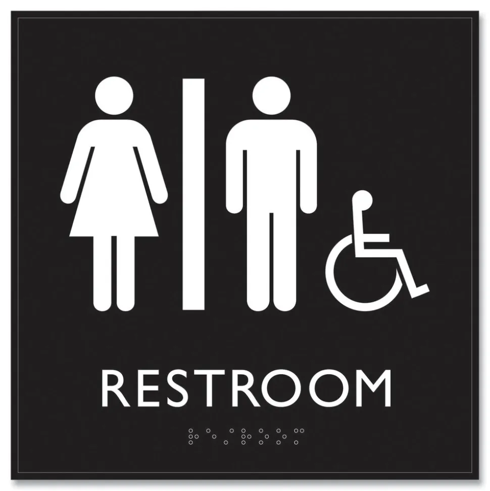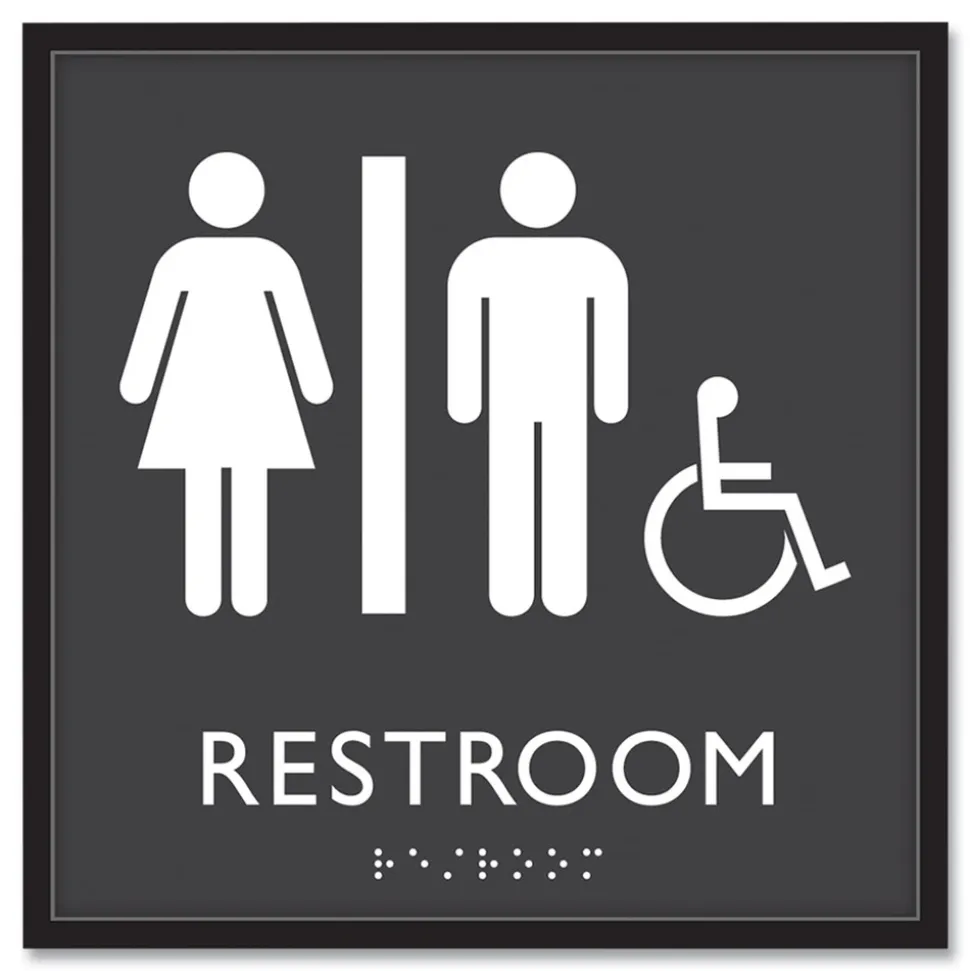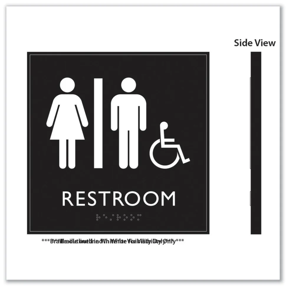 8 in. x 8 in. Unisex Accessible Restroom Plastic ADA Sign – Clear/White – 66911