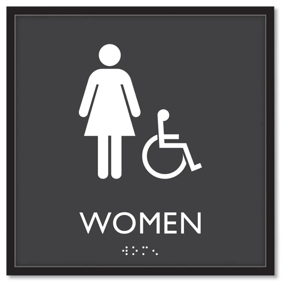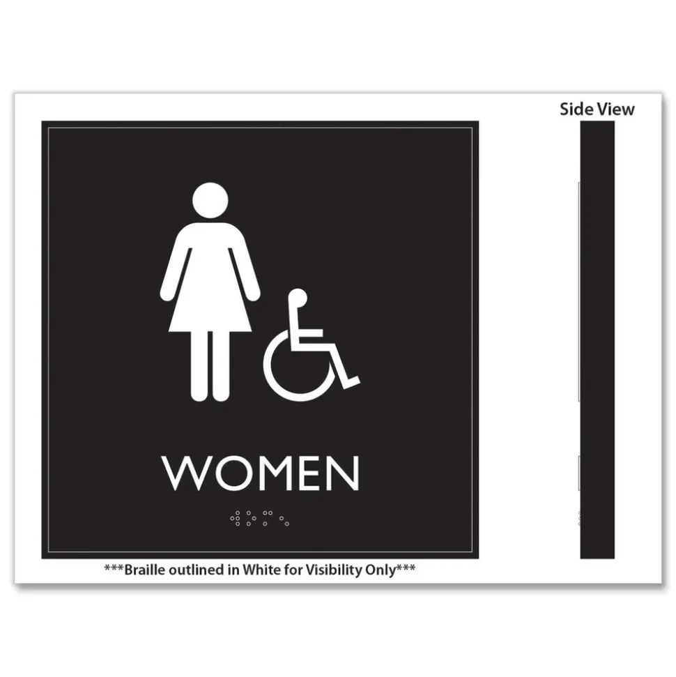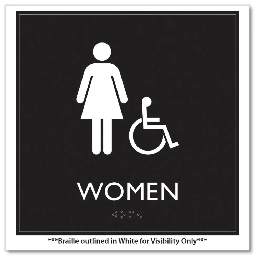 8 in. x 8 in. Women Accessible Plastic ADA Sign – Clear/White – 66913