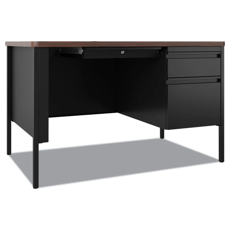 48 in. x 30 in. x 29.5 in. One Right-Hand Pedestal: Box/File Drawers Teachers Pedestal Desks – Walnut/Black – 22652
