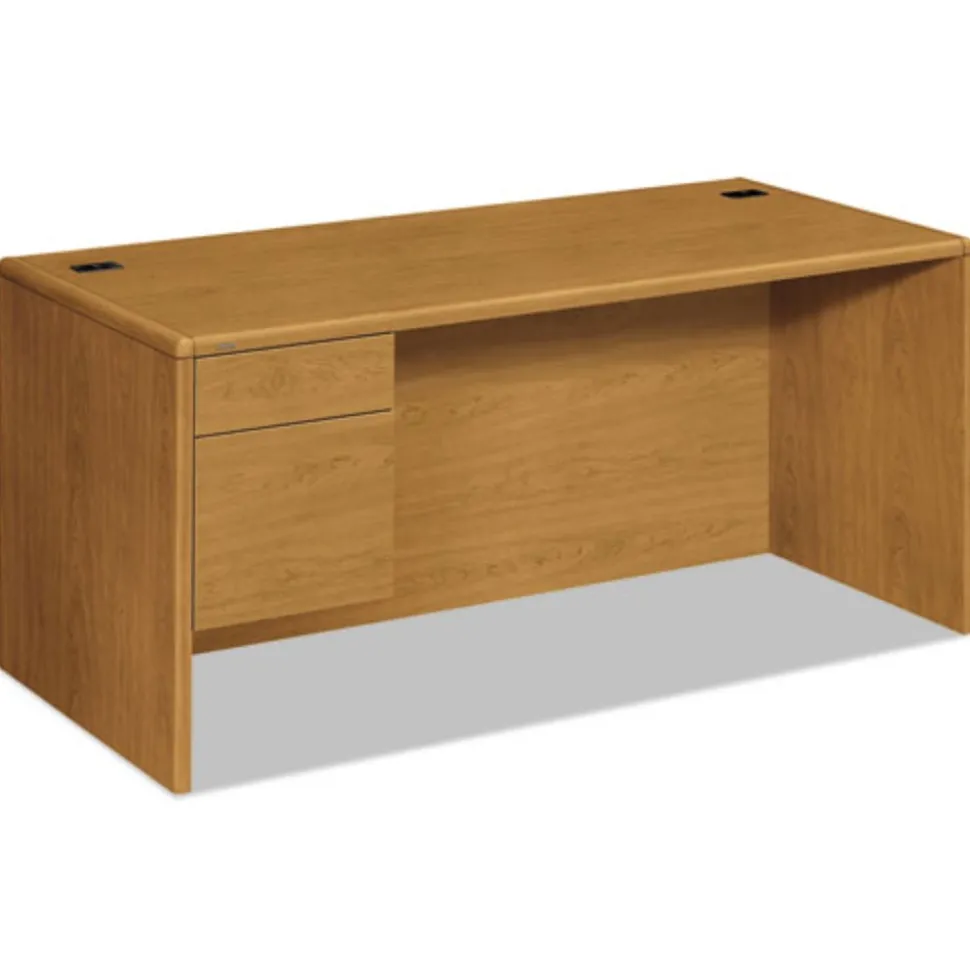 A modular management solution that combines stylish profiles and elegant accents with top-grade fit and finish. Abrasion and stain-resistant laminate with elegant hardwood trim. Drawers ride on steel ball bearing suspensions; file drawer extends fully and accommodates letter and legal size hanging files, box drawer extends 3-quarters. HON “One Key in. core removable locks make re-keying quick and easy. Full-height modesty panel for privacy. 2 worksurface grommets for cable management. For use with Right Return. Desk and Return sold and shipped separately – Order both.