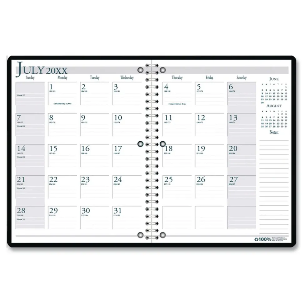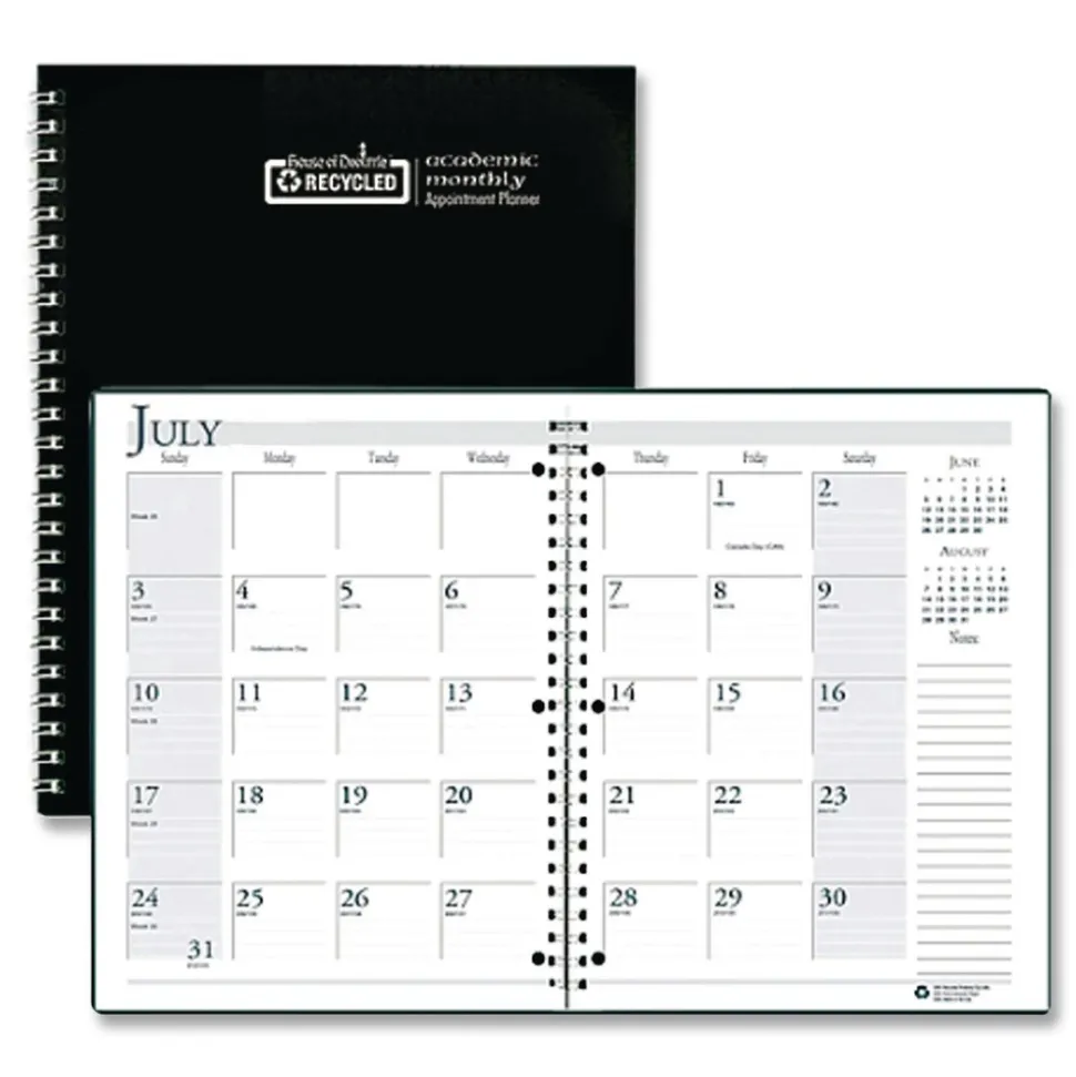House of Doolittle 26302 11 in. x 8.5 in. 14-Month (Jul 2025-Aug 2026) Wirebound Academic Monthly Planner – Black Cover