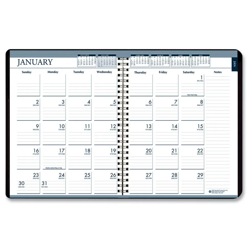 8.75 in. x 6.88 in. 12-Month (Jan-Dec 2026) Recycled 7-Day Planner – Black Cover – 286802