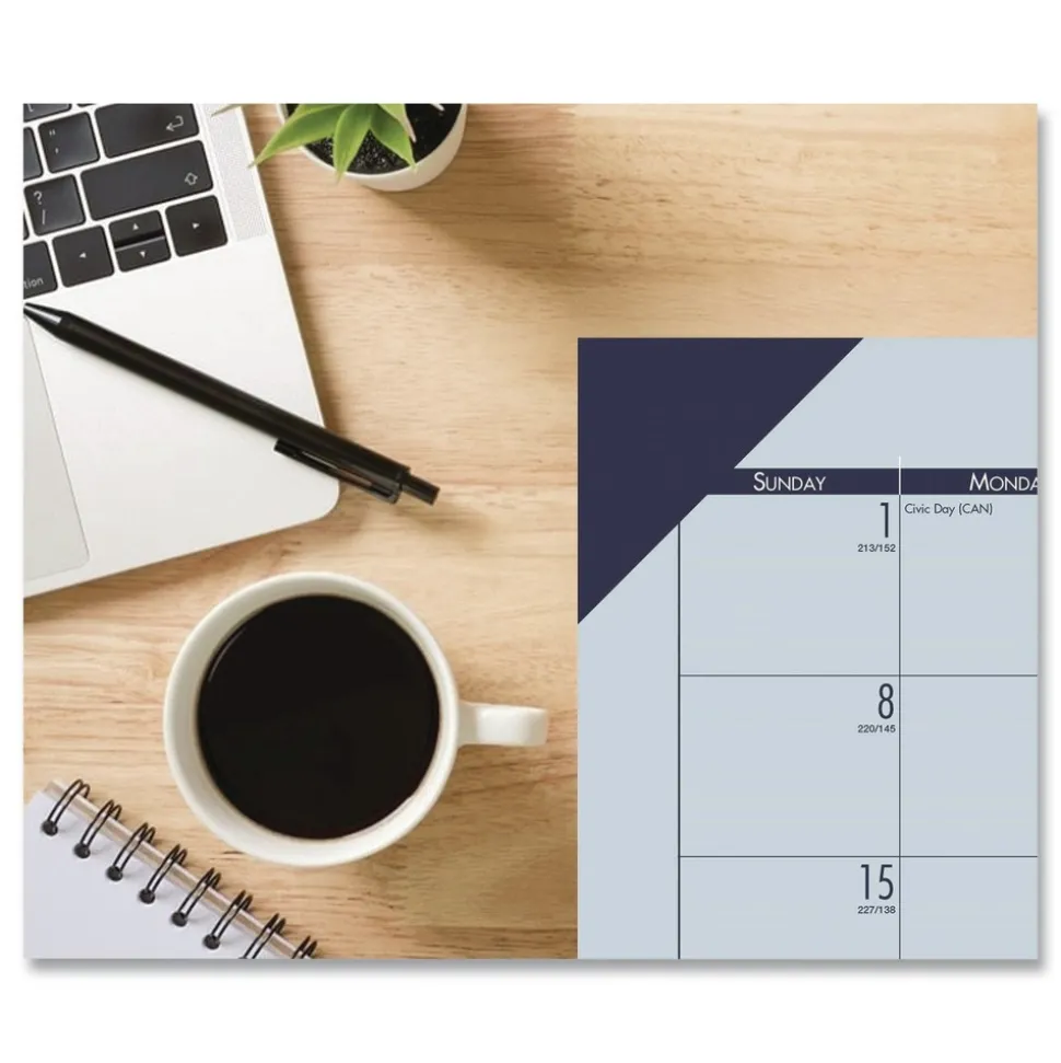 Pastel color recalls a color from nature. Strong, reinforced color-matched leatherette corners complement the pad’s paper while keeping the pages in place and protected. Full-year reference calendar aids in planning throughout the year. Features numbered weeks, Julian dates and days remaining. Lightly ruled daily blocks help keep notations neat. Made entirely of recycled materials.