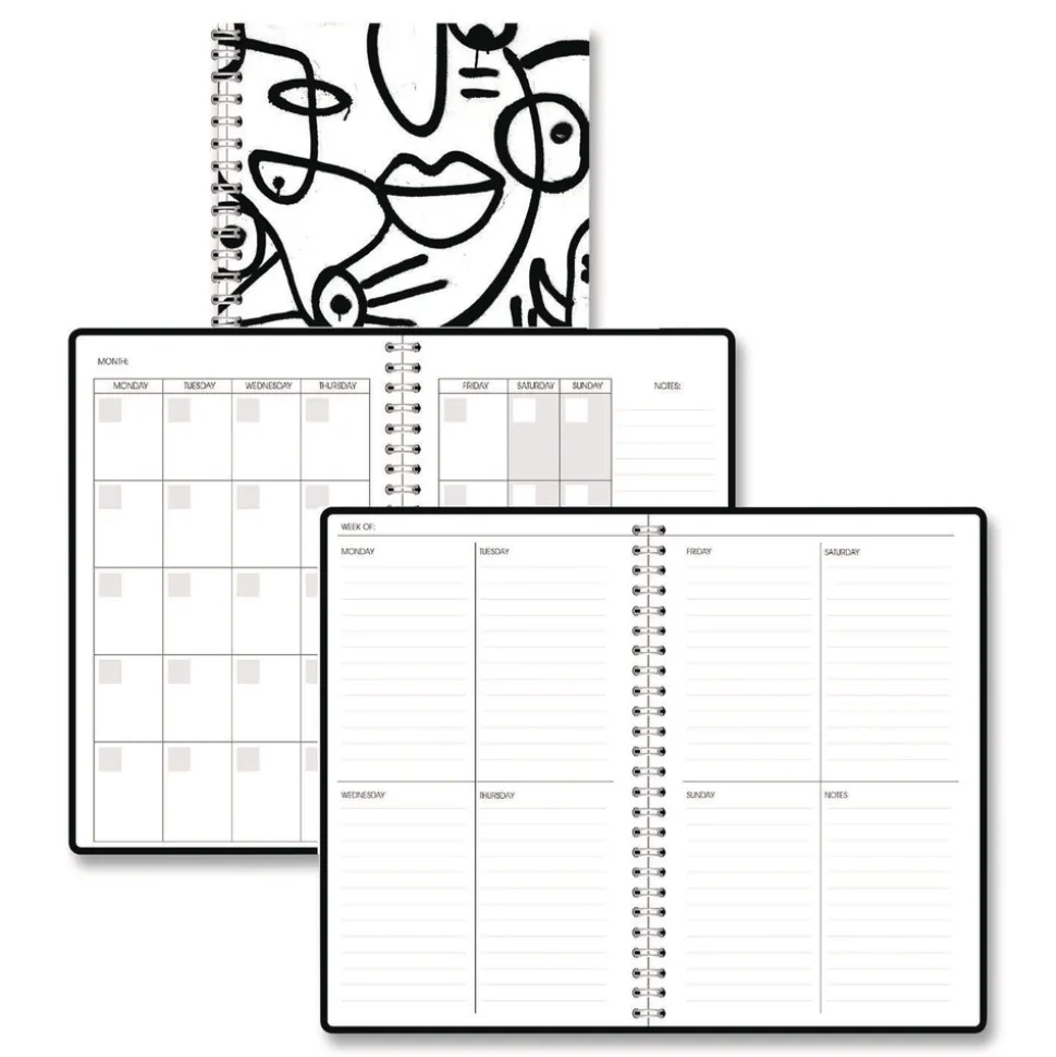 House of Doolittle 2121-41 Recycled Non-Dated Monthly/Weekly Abstract Faces Planner – Black/White Cover