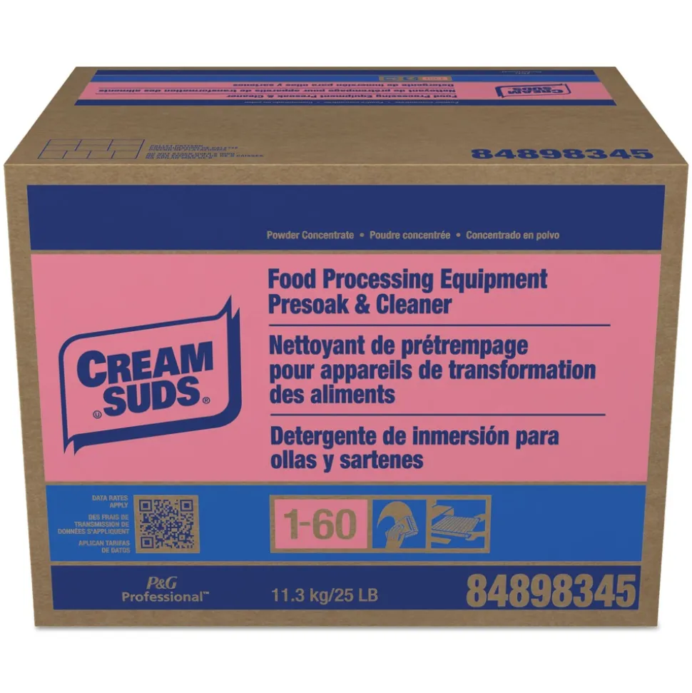 Cream Suds® Dishwashing Detergent pot and pan presoak and detergent is designed for soaking tough, baked-on foods from pots and pans. Unique formula is effective on greasy soils and can be used on a wide variety of washable surfaces such as floors, walls, stainless steel, and countertops (0.5 to 1 cup per 4-gallon bucket). Pink color and baby powder scent.