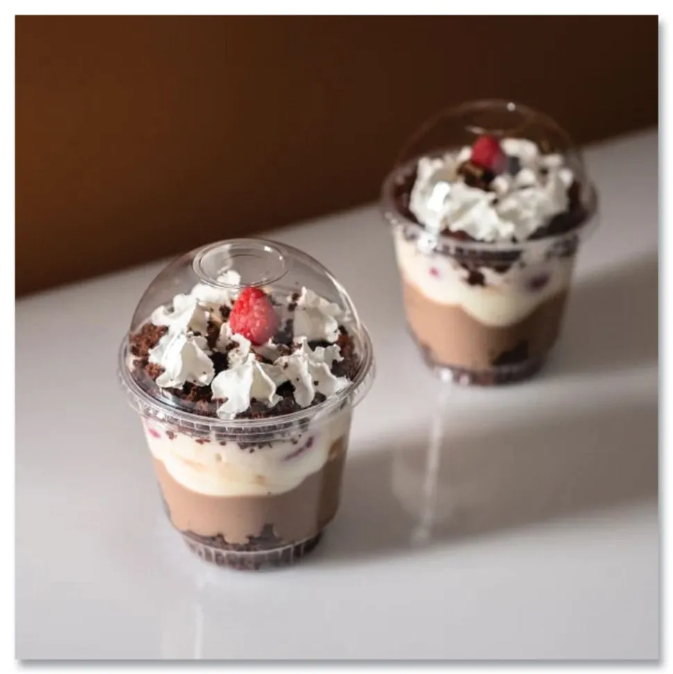 Karat PET lids are essential in any foodservice operation. They are protected with a double-poly lining both inside and out. Start serving ice-cold fountain drinks, smoothies, milkshakes and more!
