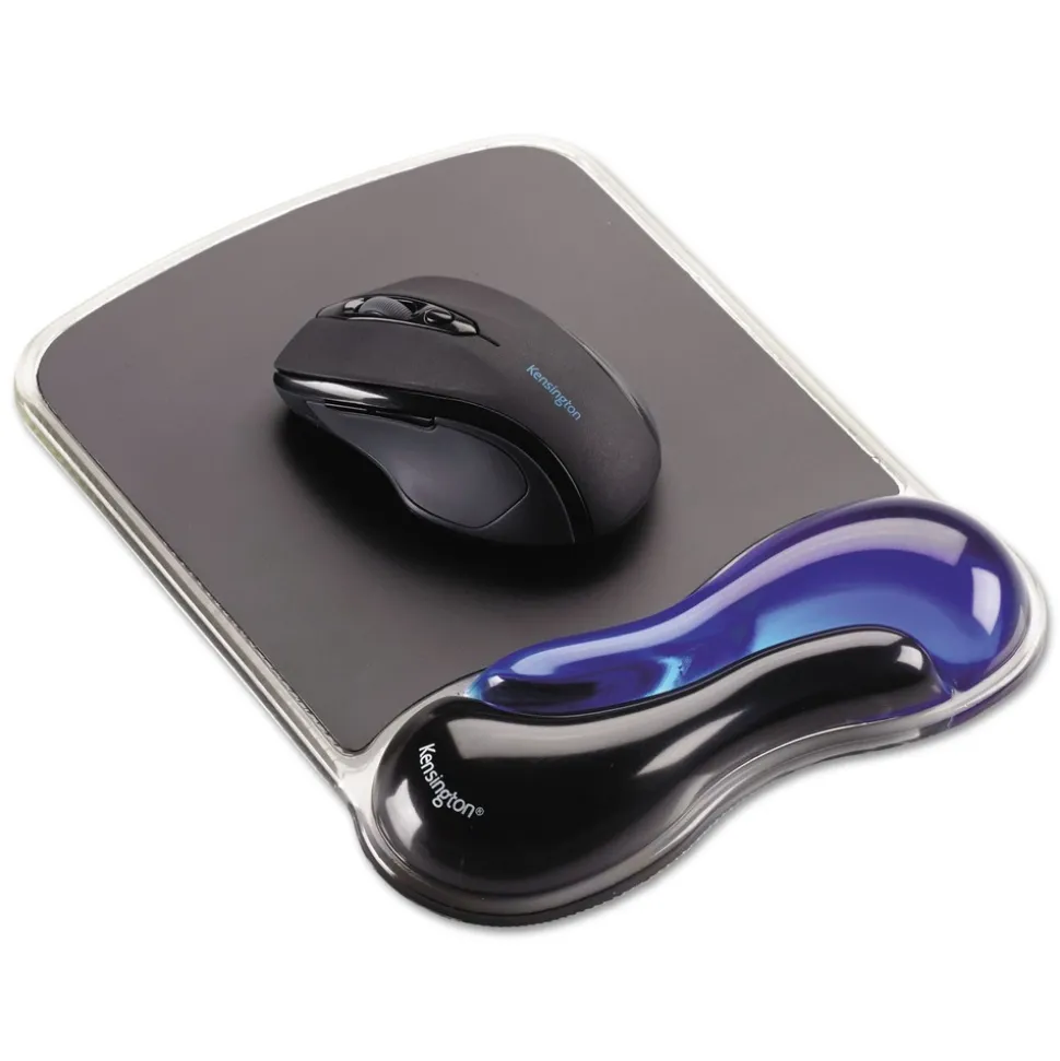 Kensington K62401AM 9.37 x 13 Duo Gel Wave Mouse Pad with Wrist Rest – Blue