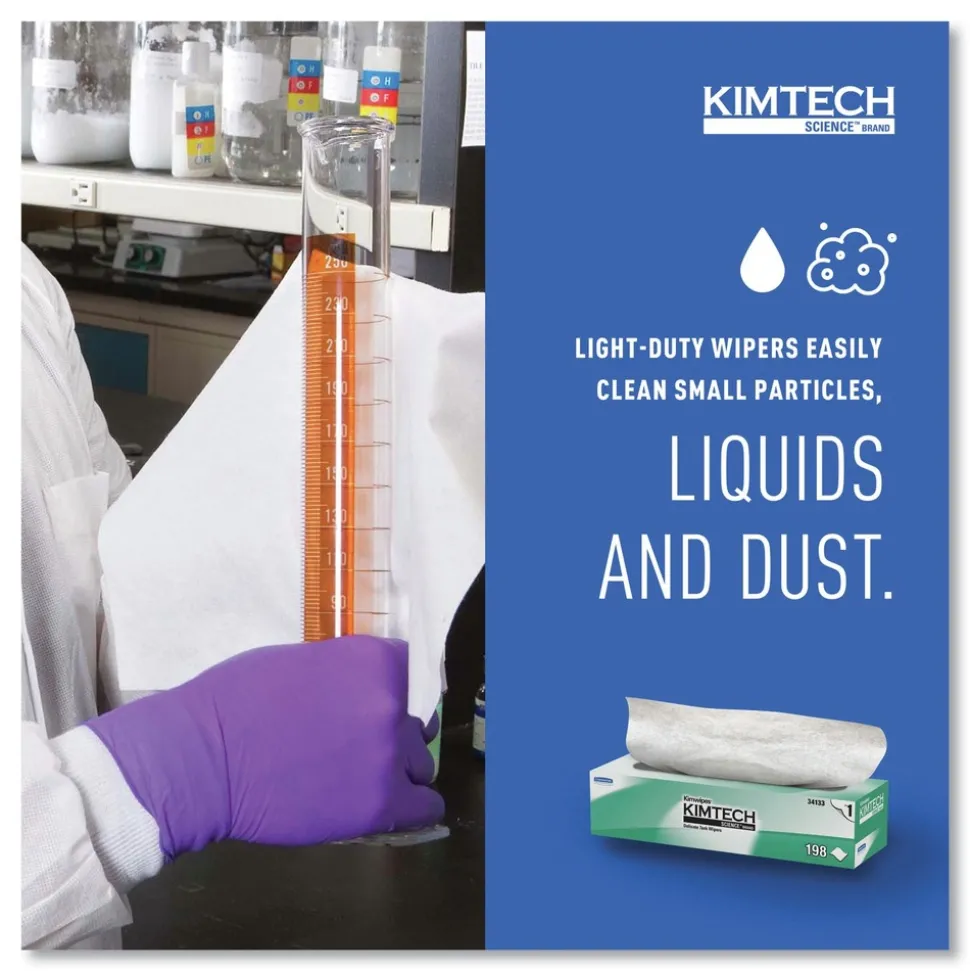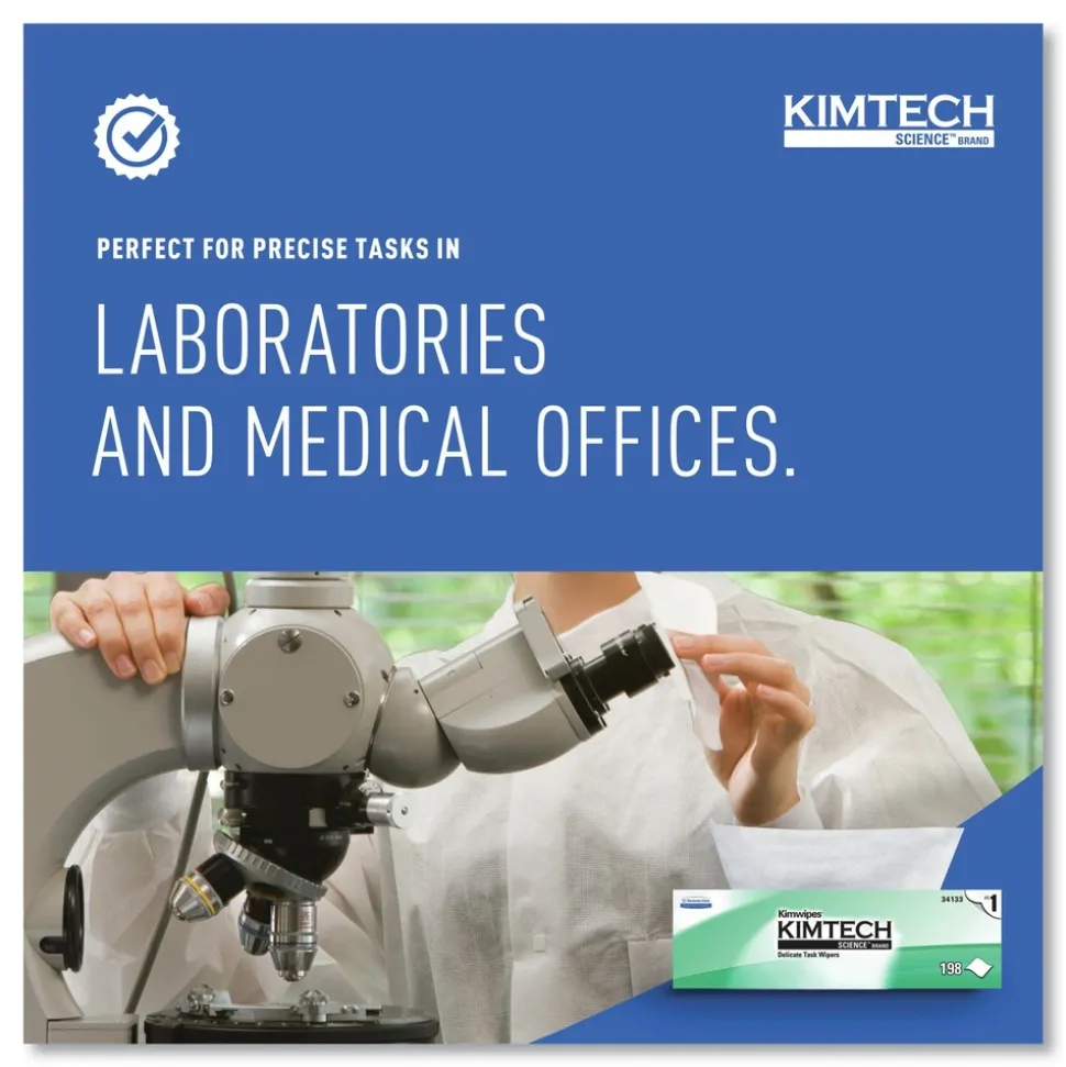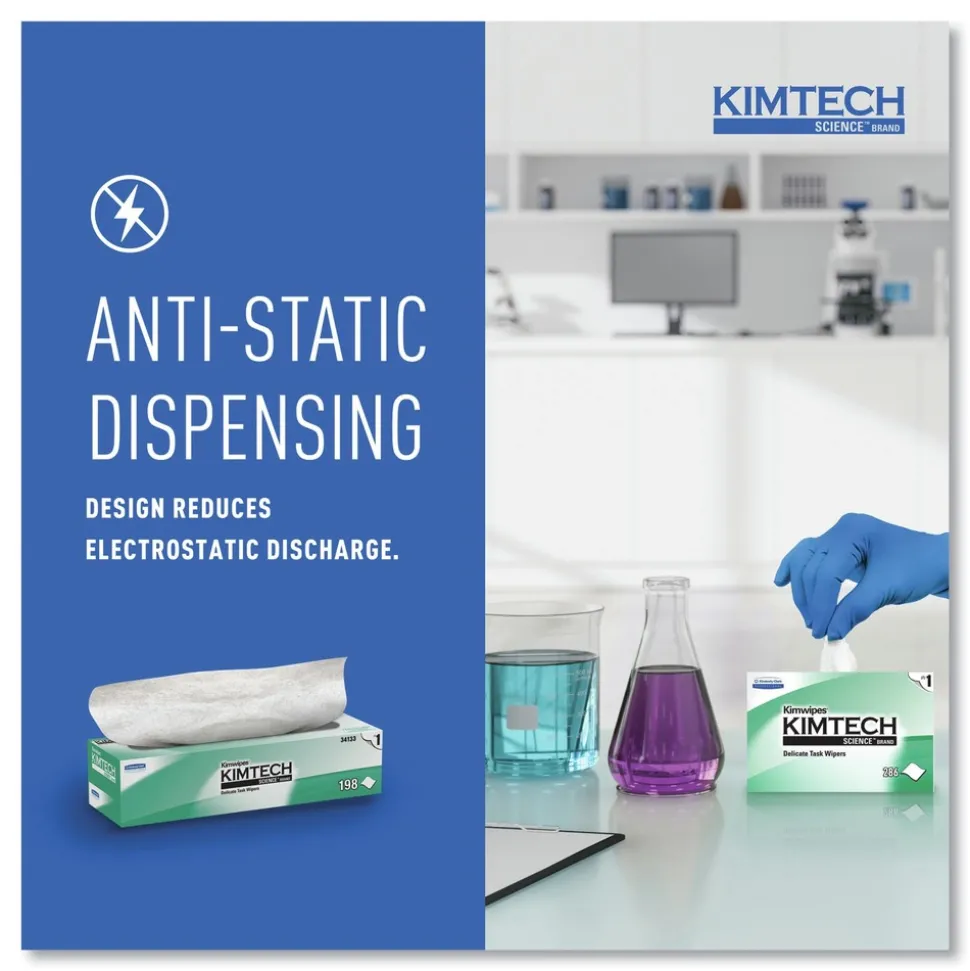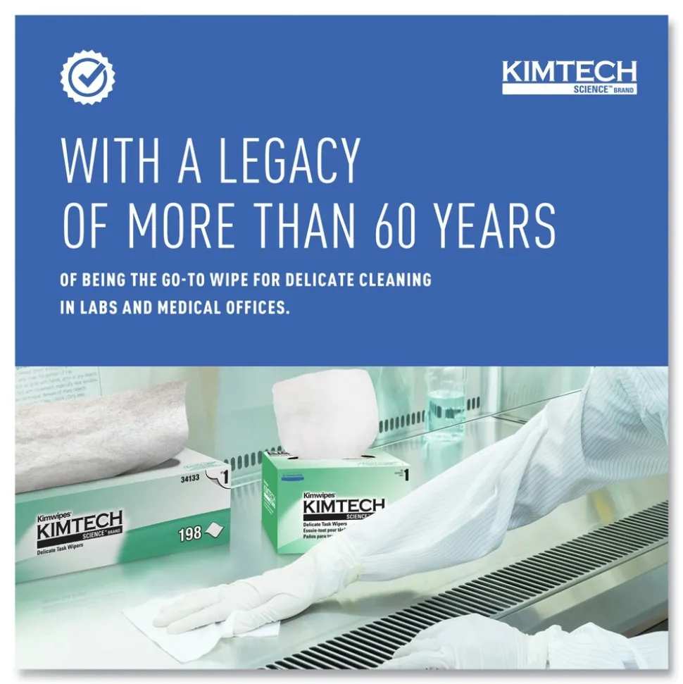 Kimtech Kimwipes Delicate Task Wipes, by Kimberly Clark, are an obvious choice when your work requires delicate, light-duty wipes to handle precise tasks. With a legacy of more than 60 years of being the go-to wipe for cleaning surfaces, parts, instruments in labs, laboratory lenses, and medical offices, these wipes easily clean liquids, dust and small particles. Plus, the anti-static dispensing design reduces electrostatic discharge. As a business owner, these wipes are an efficient choice, thanks to the waste-reducing, one-at-a-time dispensing in the Pop-Up Box.