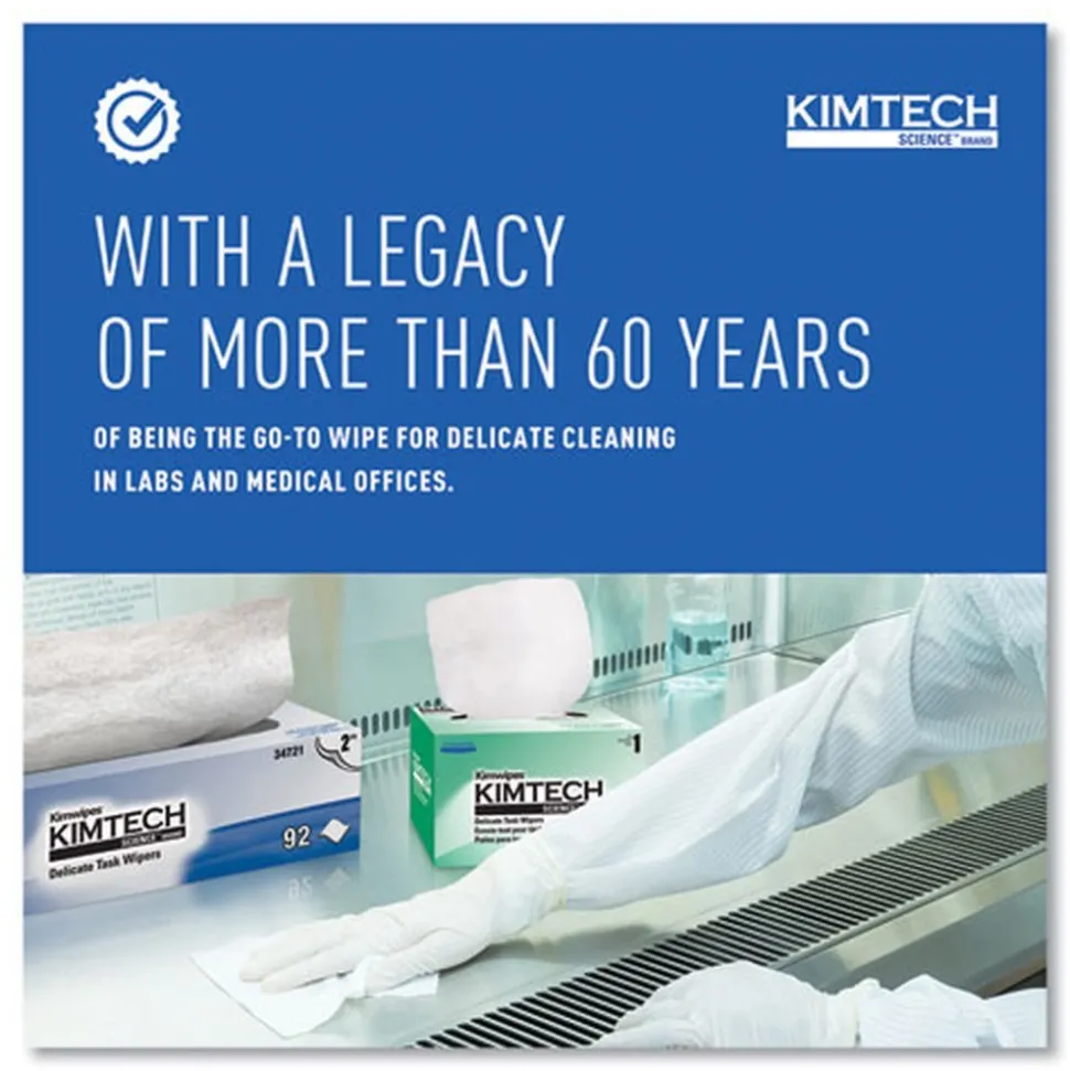 Kimtech Kimwipes Delicate Task Wipes, by Kimberly Clark, are an obvious choice when your work requires delicate, light-duty wipes to handle precise tasks. With a legacy of more than 60 years of being the go-to wipe for cleaning surfaces, parts, instruments in labs, laboratory lenses, and medical offices, these wipes easily clean liquids, dust and small particles. Plus, the anti-static dispensing design reduces electrostatic discharge. As a business owner, these wipes are an efficient choice, thanks to the waste-reducing, one-at-a-time dispensing in the Pop-Up Box.
