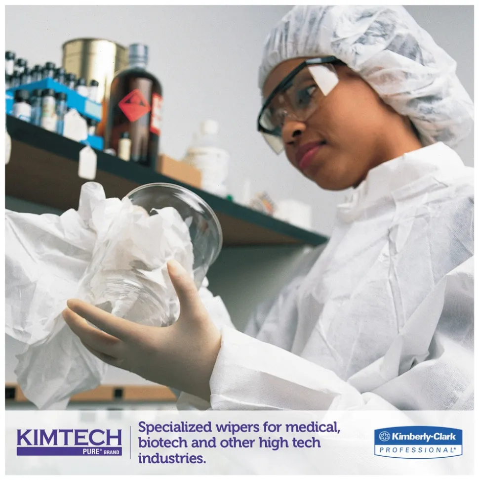 Do you require a wiper for a sensitive environment, like cleanrooms, medical equipment manufacturing or the biotech industry? Kimtech Pure W4 Critical Task Dry Wipers could be right for your business. They are specially designed for ISO Class 4 and higher cleanrooms, since they are anti-stat, double bagged for extra protection and low lint (good for environments where “lint-free” is important). Their unique, textured surface is absorbent, so you can use them for a variety of tasks. These disposable wipers are ideal for use in pharmaceutical, high-tech, biotechnology and medical-device industries that require critical tasks.