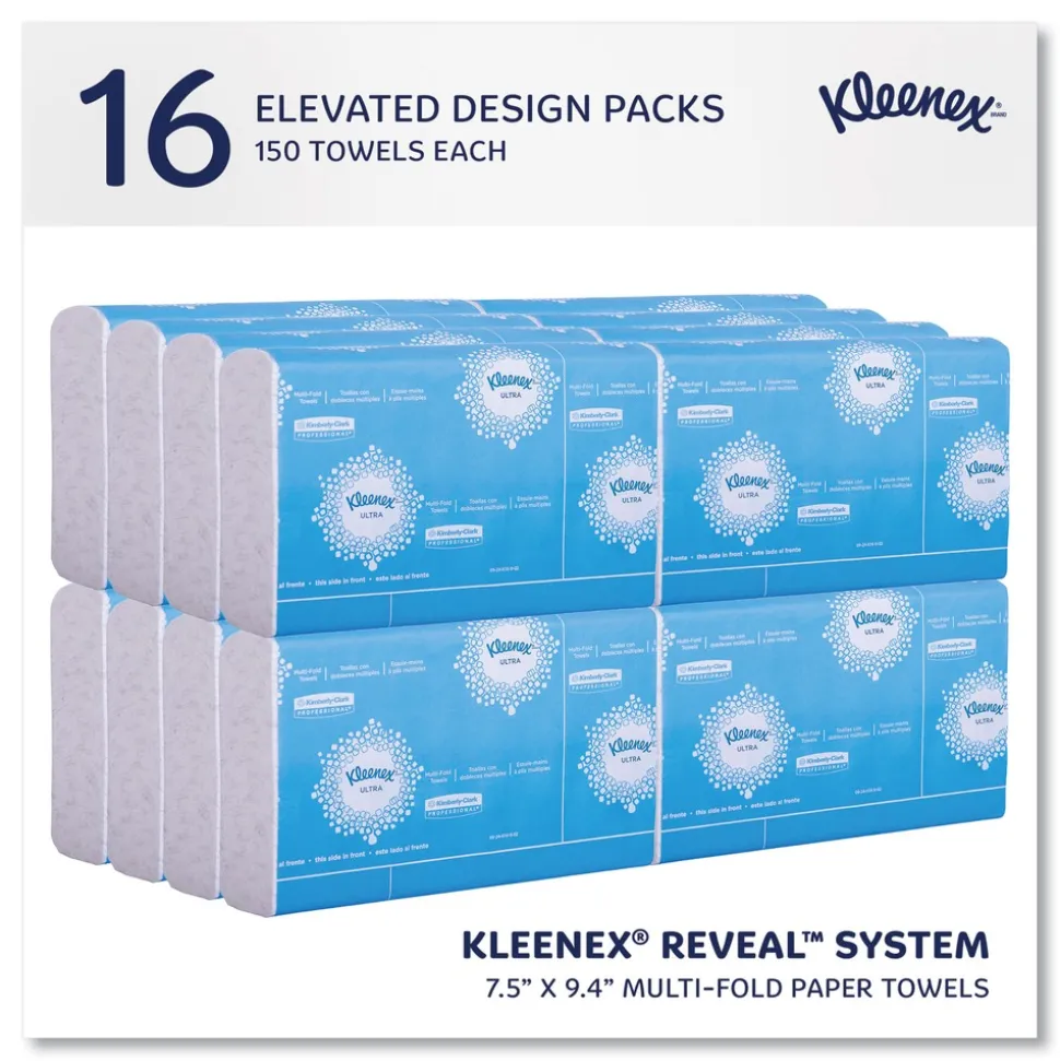 Kleenex 46321 2-Ply 8 in. x 9.4 in. Reveal Multi-Fold Towels – White (16/Carton)